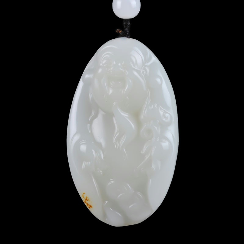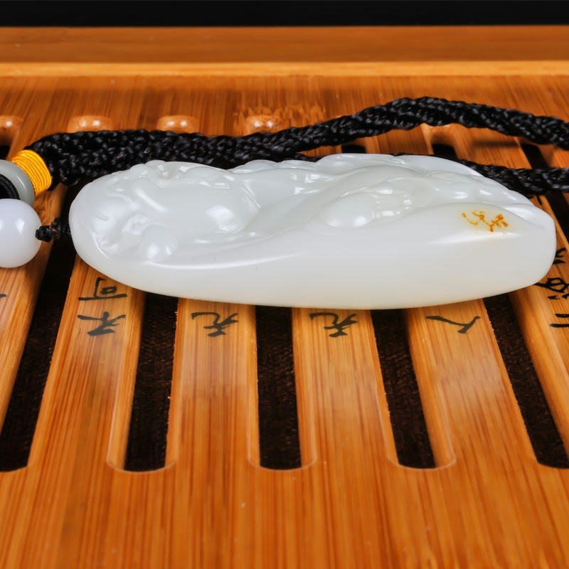 厂家直销新疆和田白玉把件白玉财神带皮手把件籽料把玩件老坑料