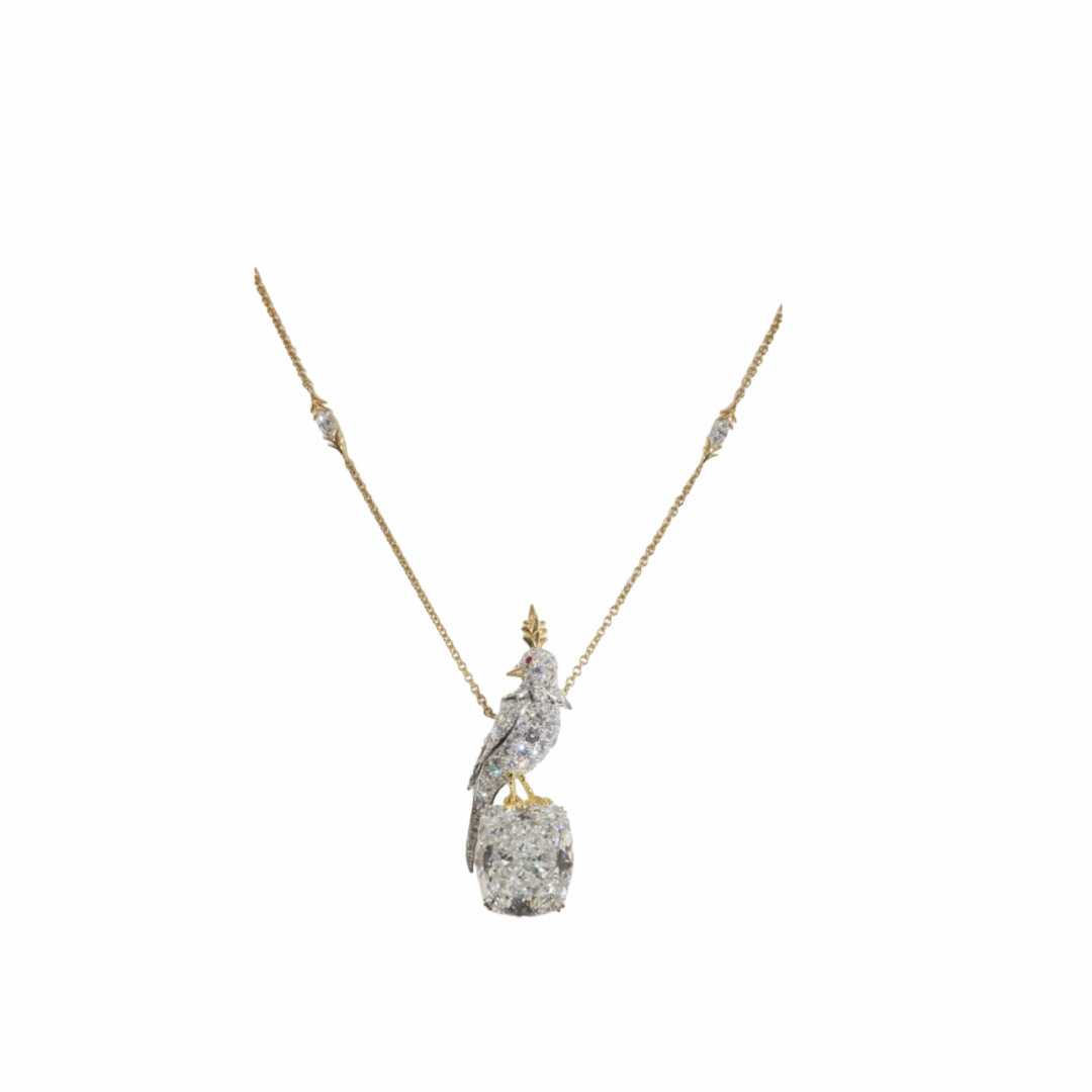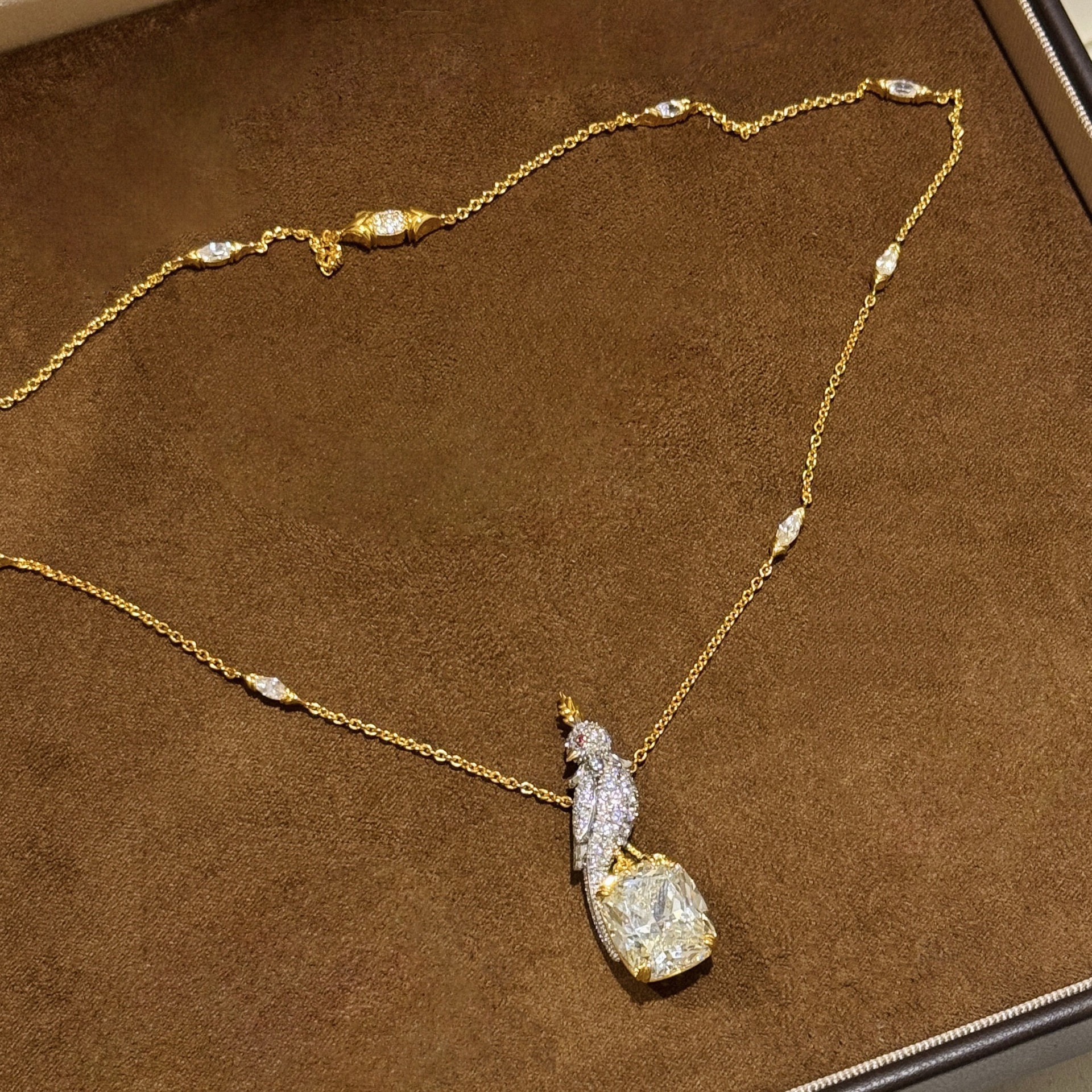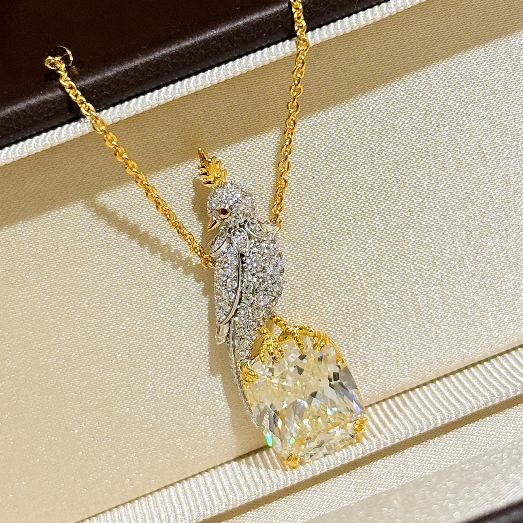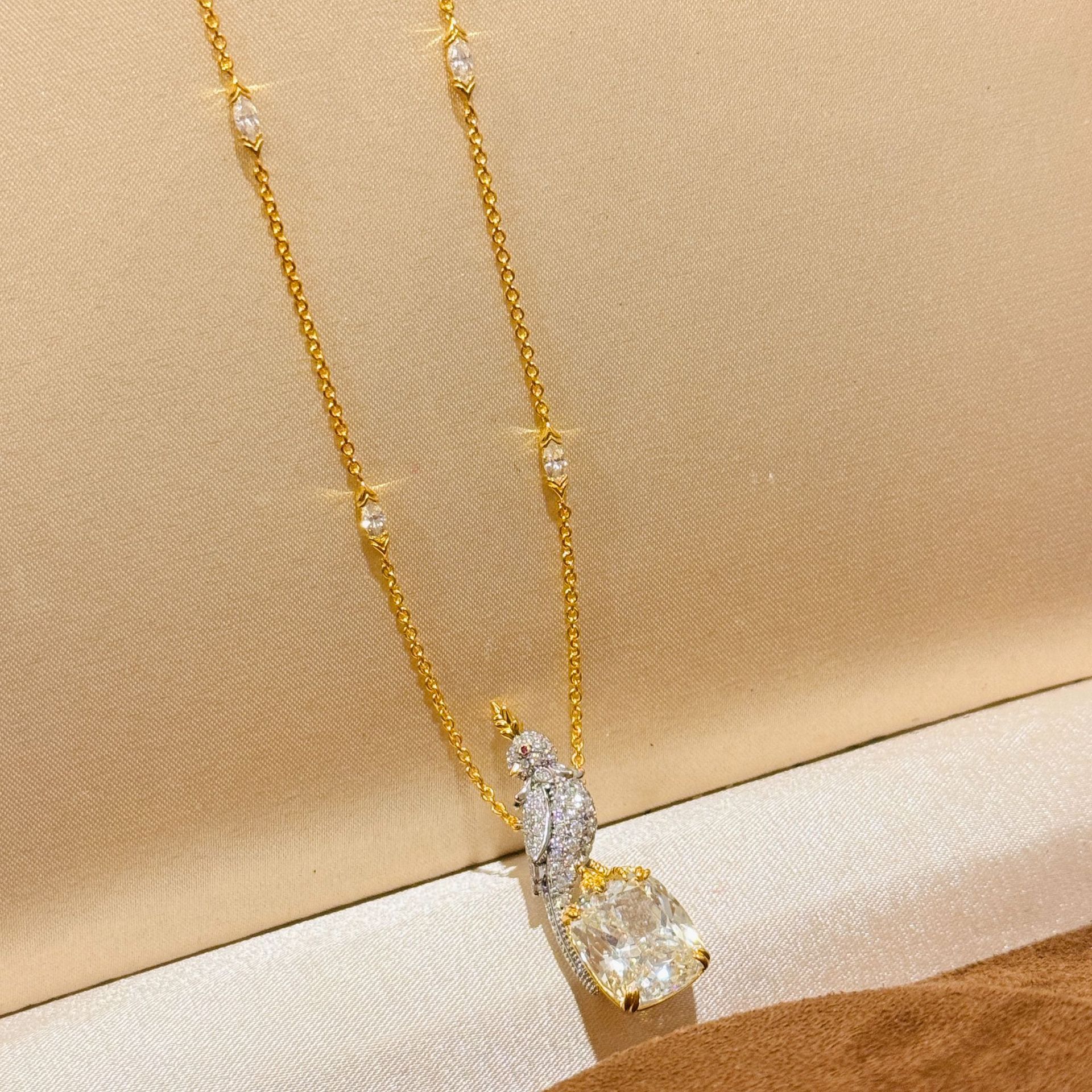 设计师s925纯银 满钻小鸟黄钻项链仿真钻切割浅鹅黄钻回眸鸟感