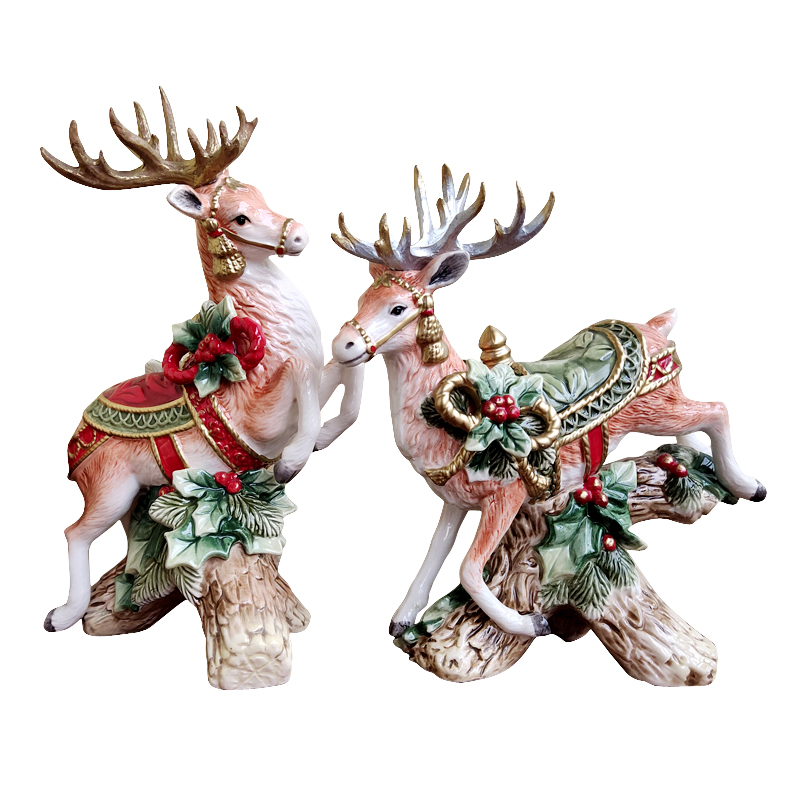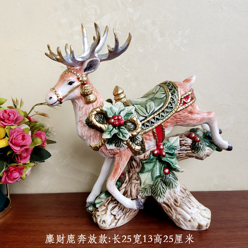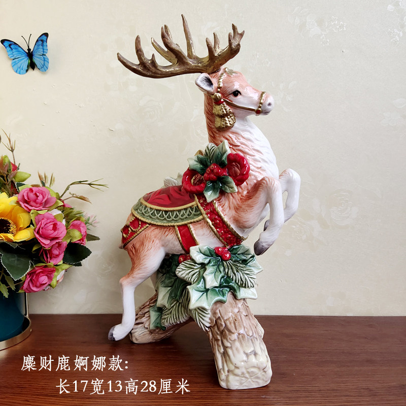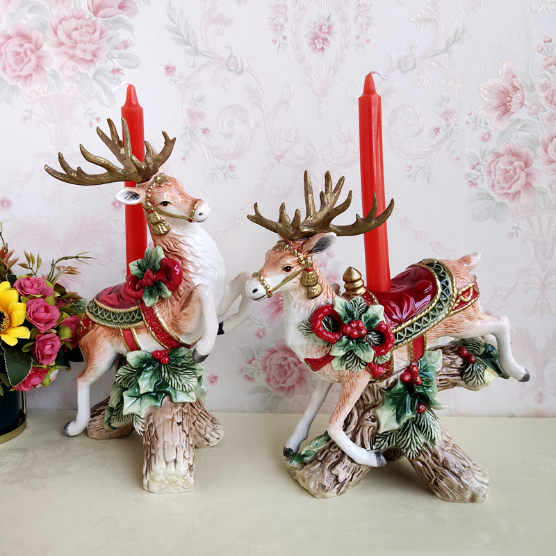 出口外单陶瓷耶诞麋鹿烛台节日饭厅布置装饰礼品欧式祝福装饰