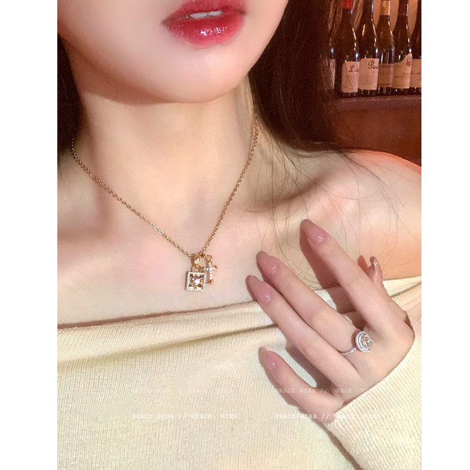 小幸运!十字吊牌项链女轻奢小众2025秋冬锁骨链气质高级感毛衣链