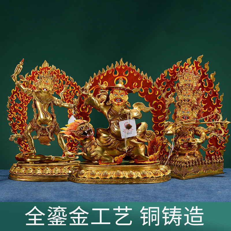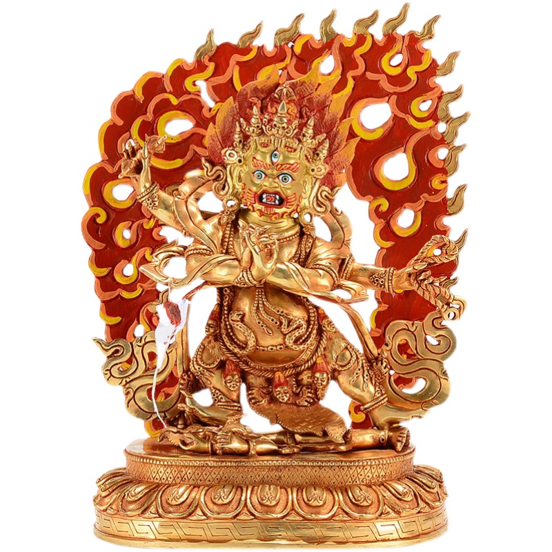 尼泊尔手工铜全鎏金铜摆件《吉祥天母》铜像愤怒《莲师》雕像摆件