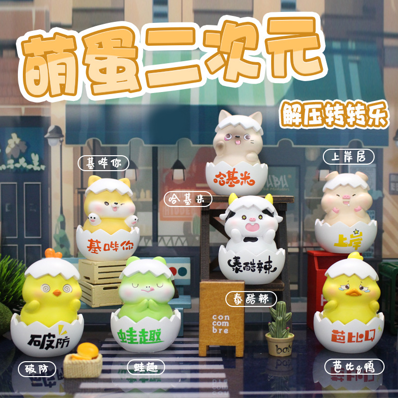 萌蛋二次元盲盒手办摆件解压转转乐创意树脂家居装饰品手办小