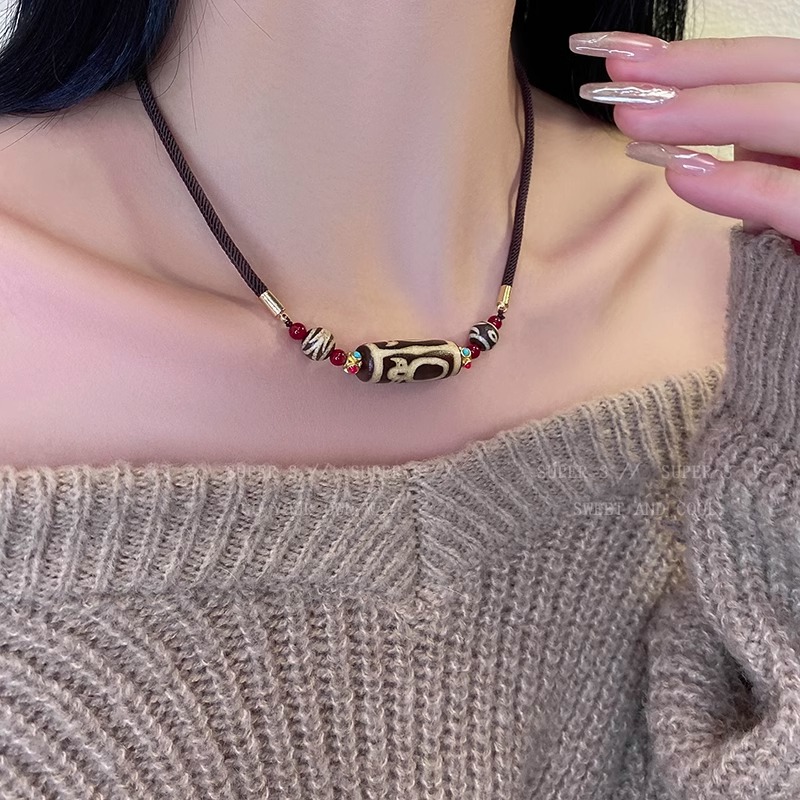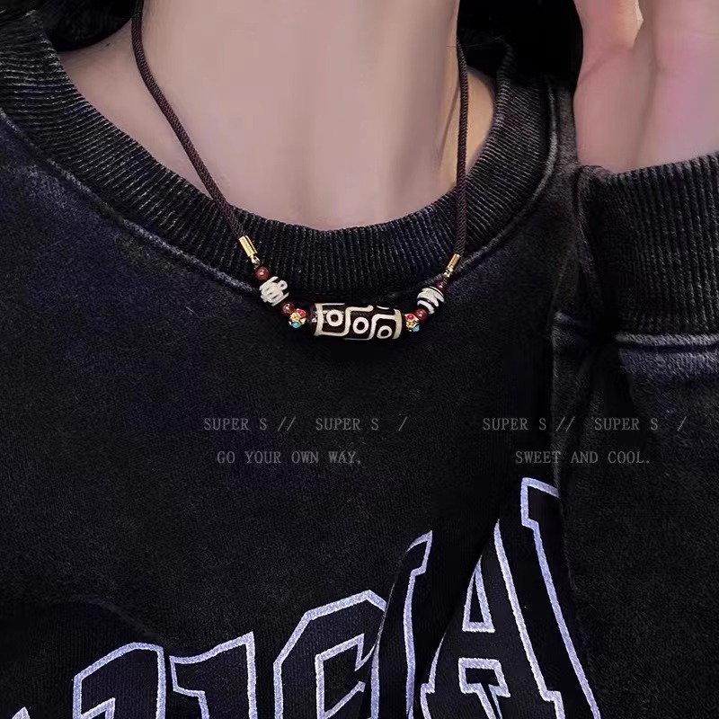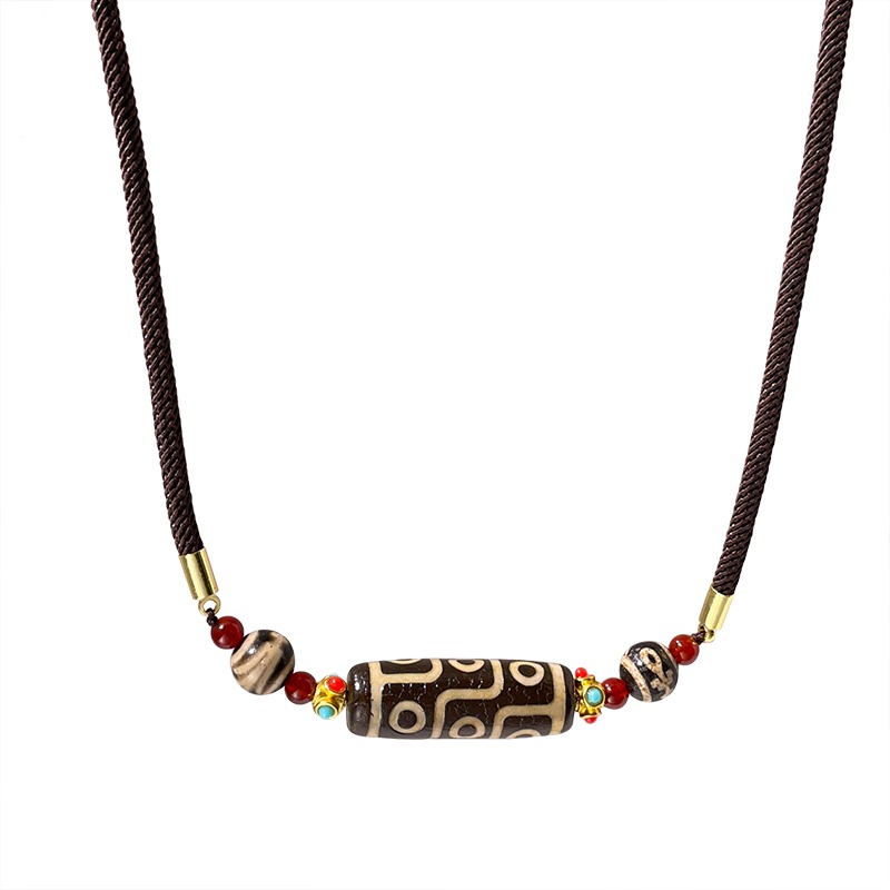 西藏真品天然九眼天珠玛瑙吊坠男女款民族风百搭毛衣链转运锁骨链