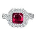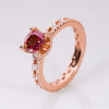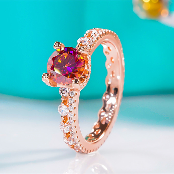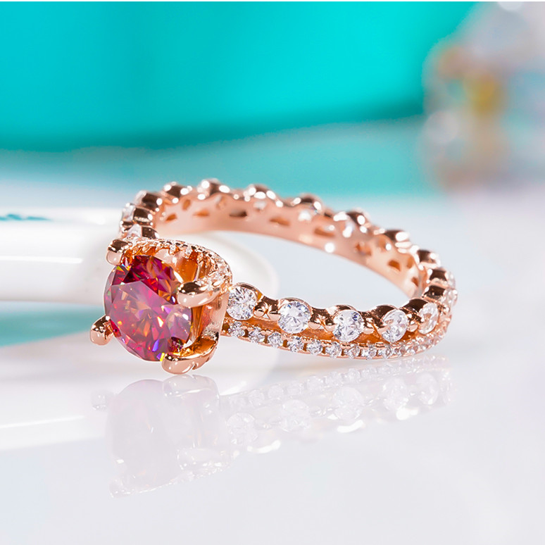 AU750玫瑰金美国进口D色莫桑石群镶红宝石双层复古戒指1克拉钻戒