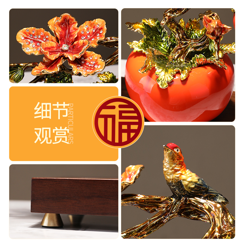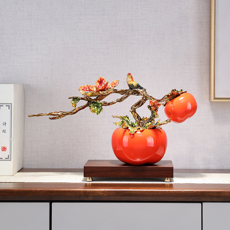 中式柿柿如意柿子摆件创意金属工艺品书房玄关家居装饰品乔迁礼物