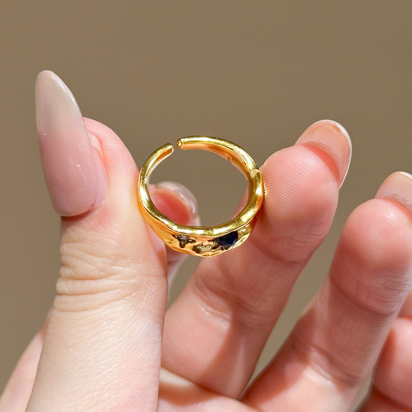 LYNNROMAN复古风戒指女蓝宝石星星开口可调节时尚指环高级食指戒