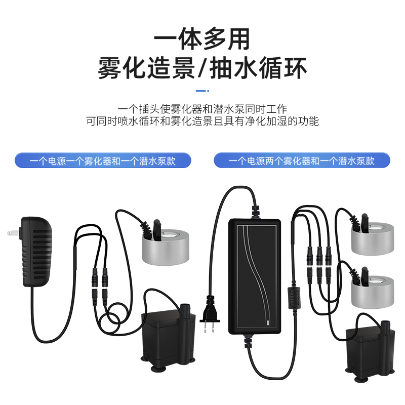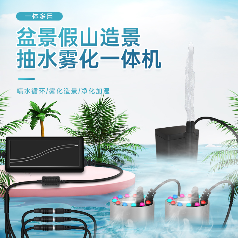 小水泵抽水机循环雾化加湿造雾器一体机假山喷泉流水盆景摆件