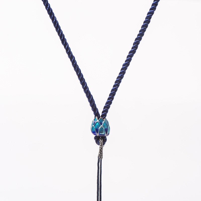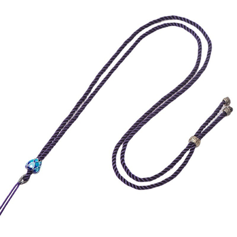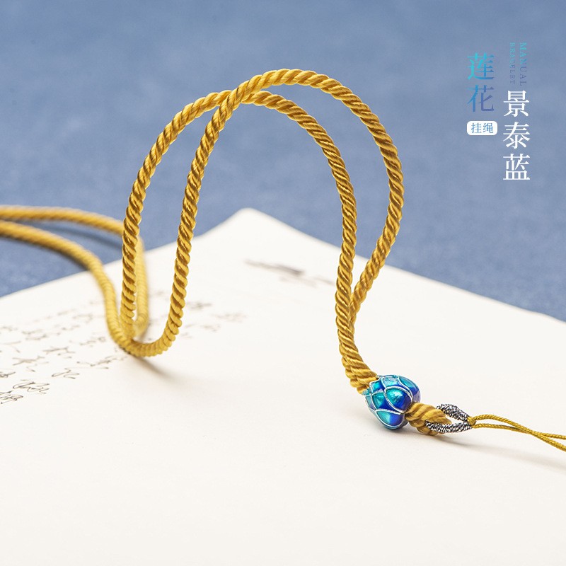DIY手工编织米兰线景泰蓝莲花可调节项链绳穿搭黄金玉器吊坠挂绳