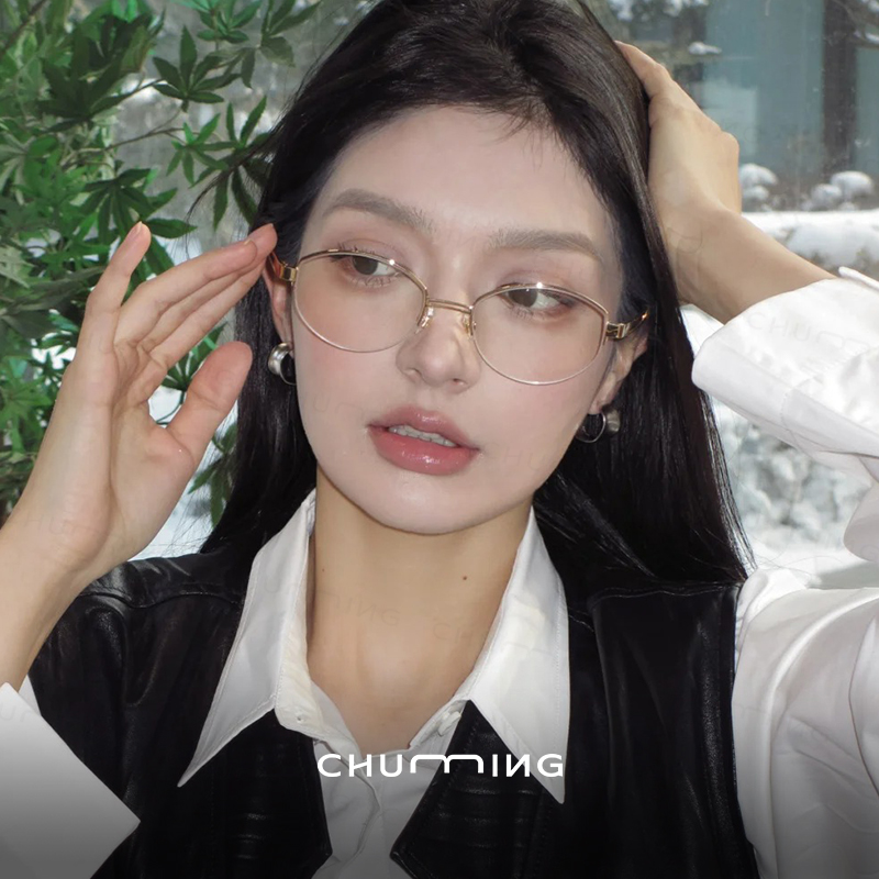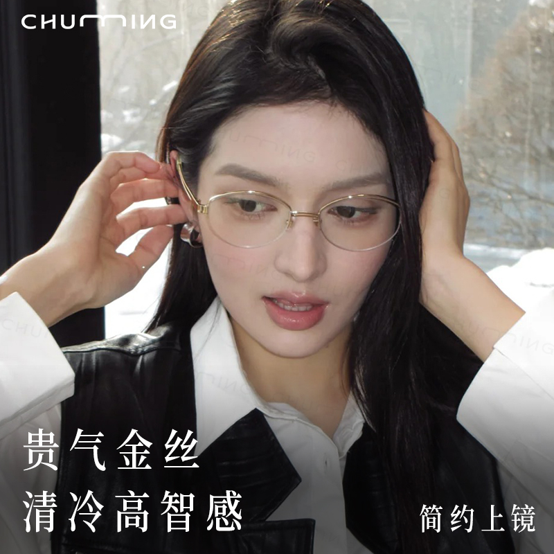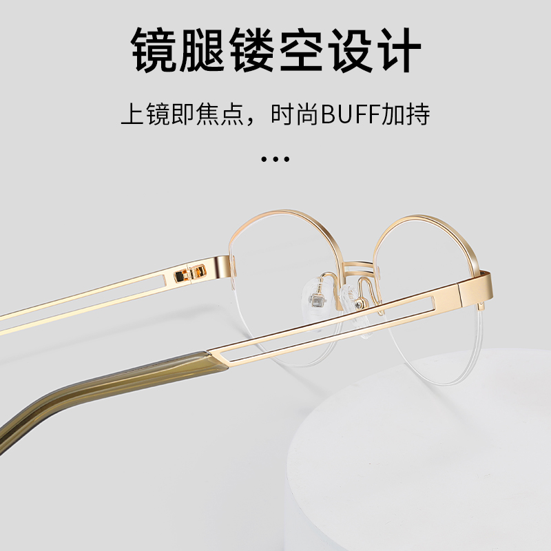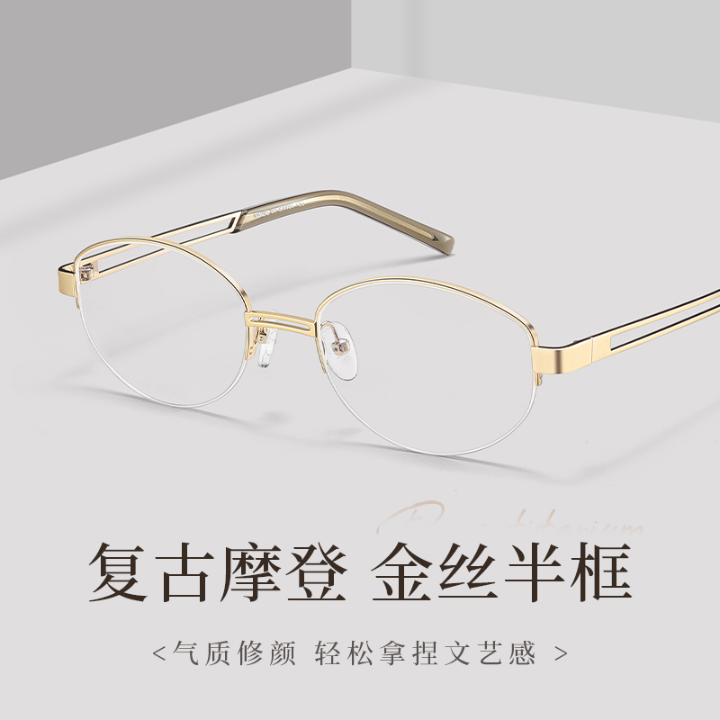 复古老钱风金丝椭圆半框眼镜近视女可配度数方圆脸高级感眼睛镜架