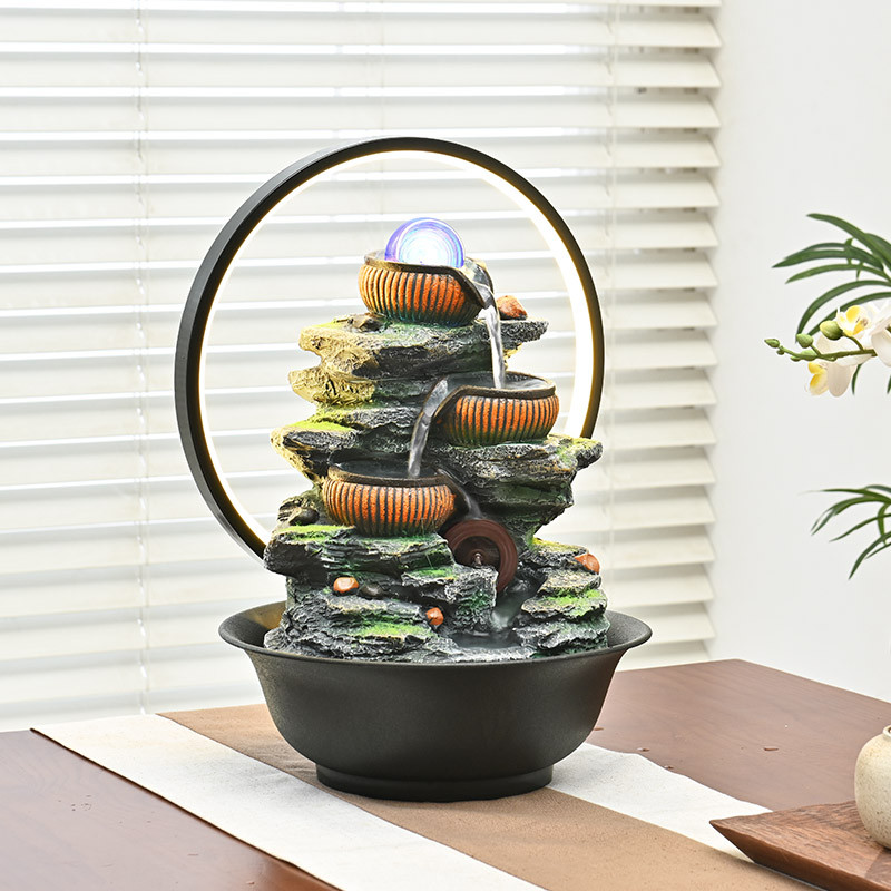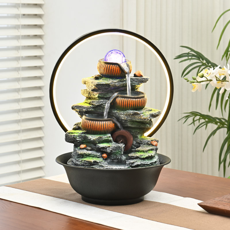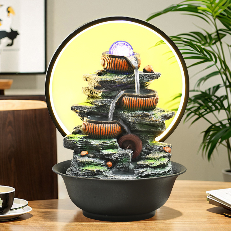 创意假山流水摆件循环水球装饰客厅办公室桌面小型喷泉招财风水轮