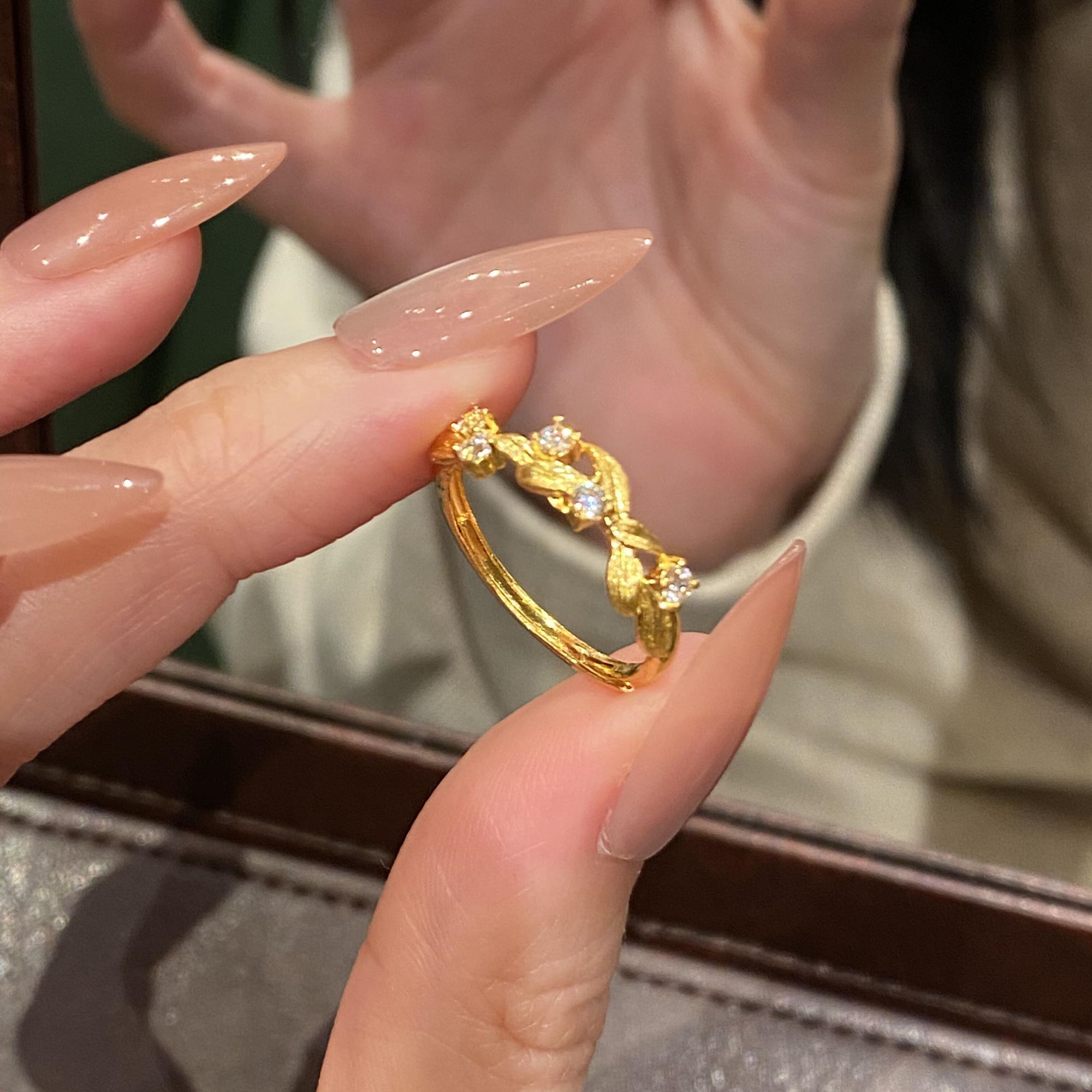 枝叶缠绕戒指女小众高级2025新款不掉色高级感爱神花环食指指环