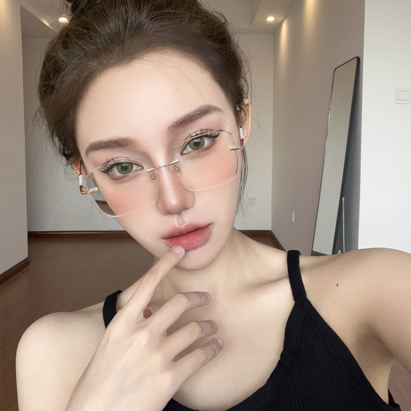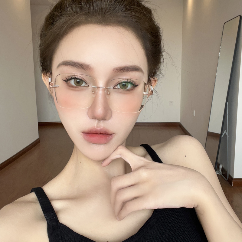 纯欲无框眼镜女可配度数金丝无边框超轻素颜女神防蓝光眼睛架细闪