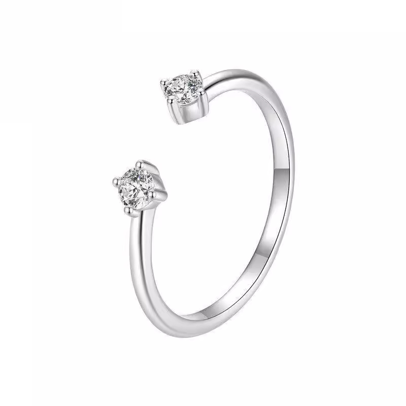 原创精致莫桑石开口小圆钻戒指s925纯银指环开口可调节手饰百搭女
