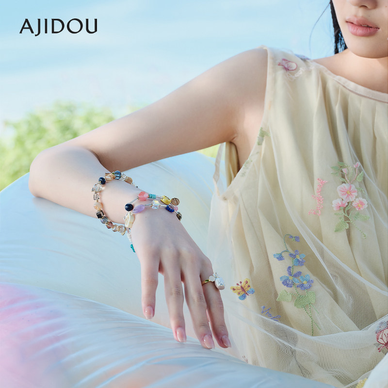 AJIDOU阿吉豆手链女款璀璨时尚水晶珍珠百搭日常手环手饰彩色串珠