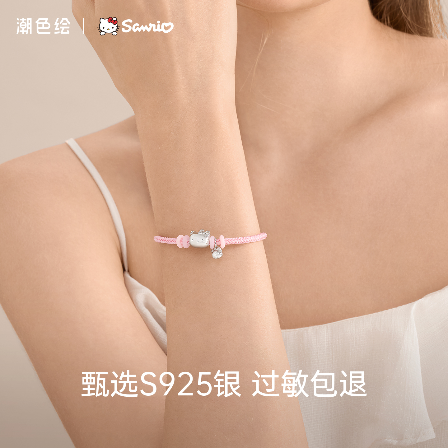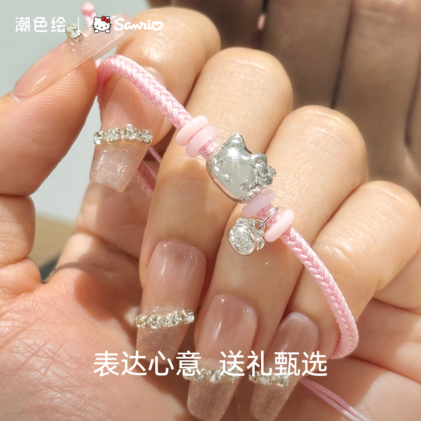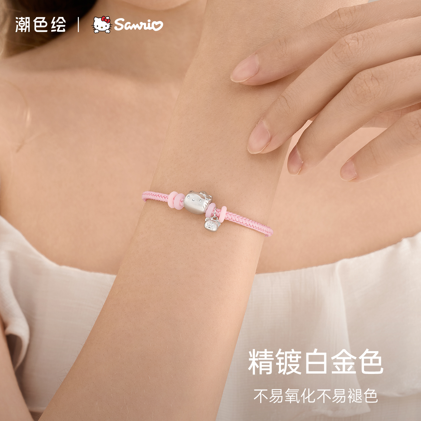 潮色绘x三丽鸥HelloKitty纯银手链编织手绳轻奢小众精致生日礼物