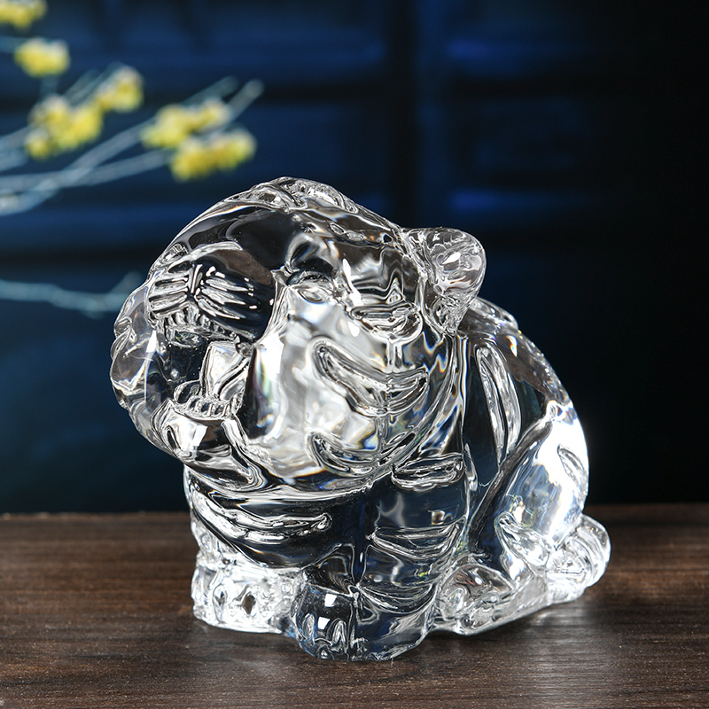 粉紫黄水晶老虎摆件虎年新年礼物虎虎生威吉祥物家居装饰开业礼品