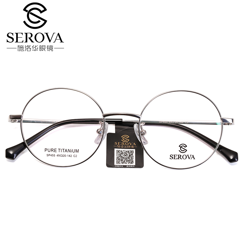 施洛华小圆框宽边高度数近视眼镜架纯钛镜框可近视眼镜片 SP455
