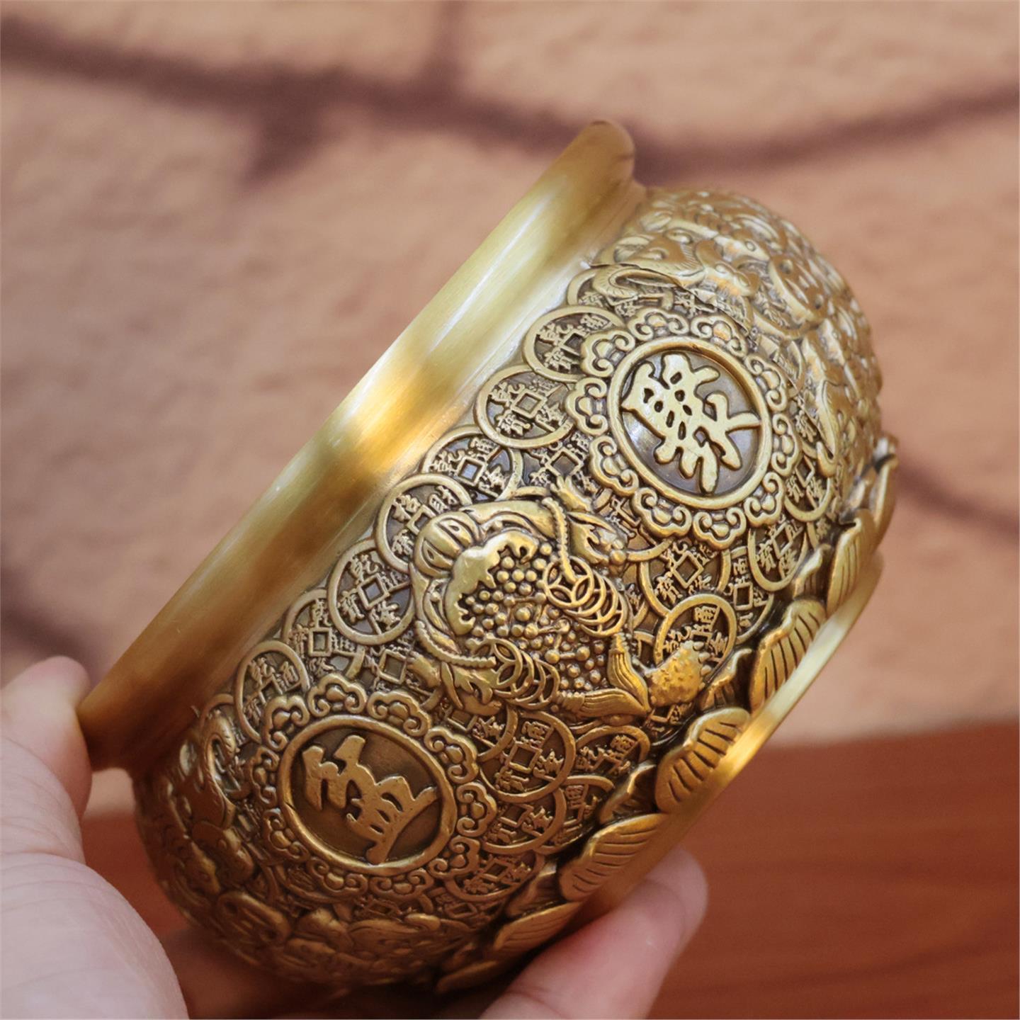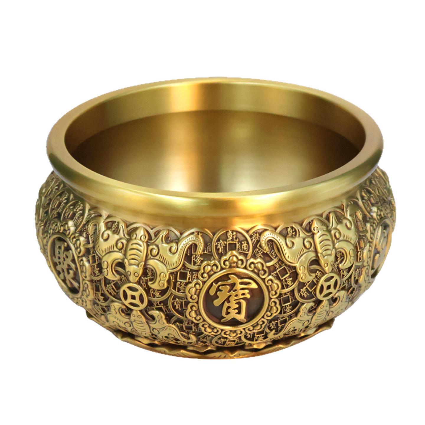 黄铜金蟾聚宝盆摆件八福聚宝盆客厅玄关供奉财位前台办公室装饰品