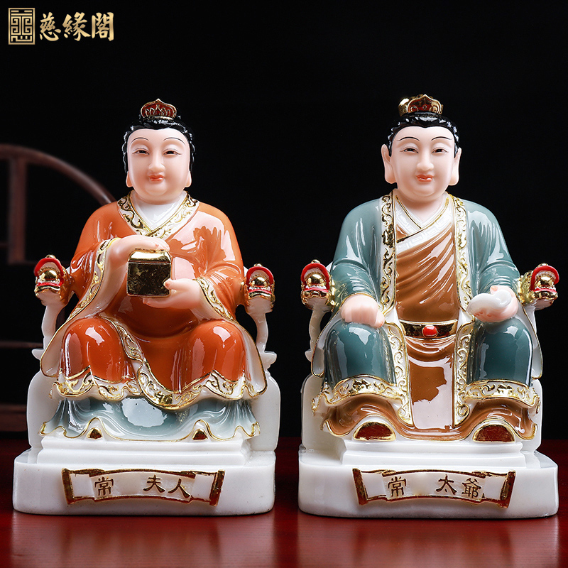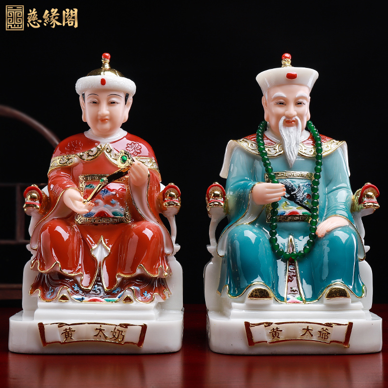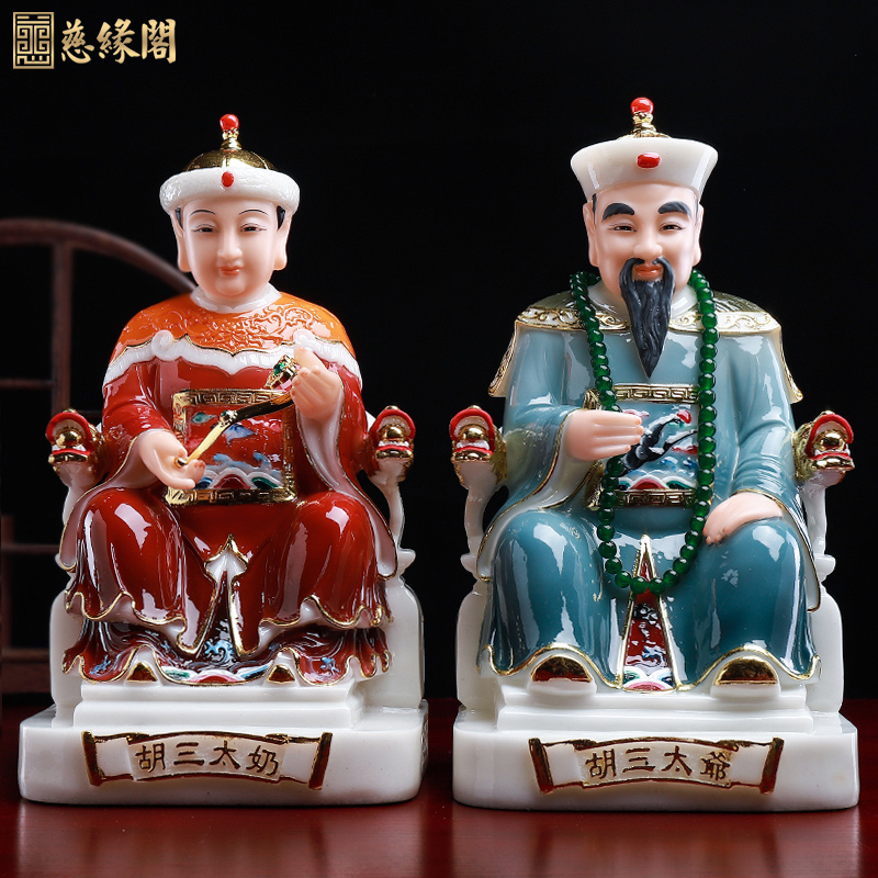 慈缘阁汉白玉彩绘胡三太爷胡三太奶像黄三太爷太奶四大家族像摆件