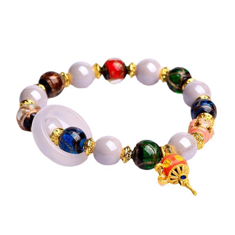 2025粉灰色瓷五色多宝琉璃金箔单圈手串搭配跑环男女情侣时尚手链