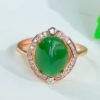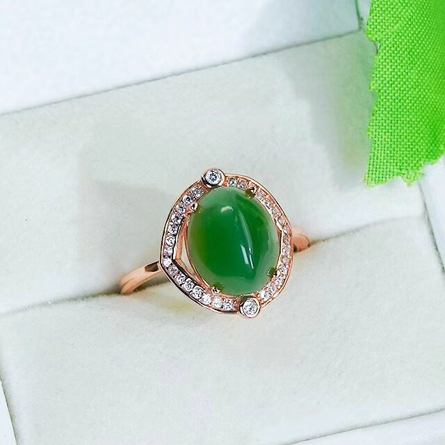 洛丽亚天然和田玉银镶嵌时尚简镶高级感玉石碧玉菠菜绿马眼戒指