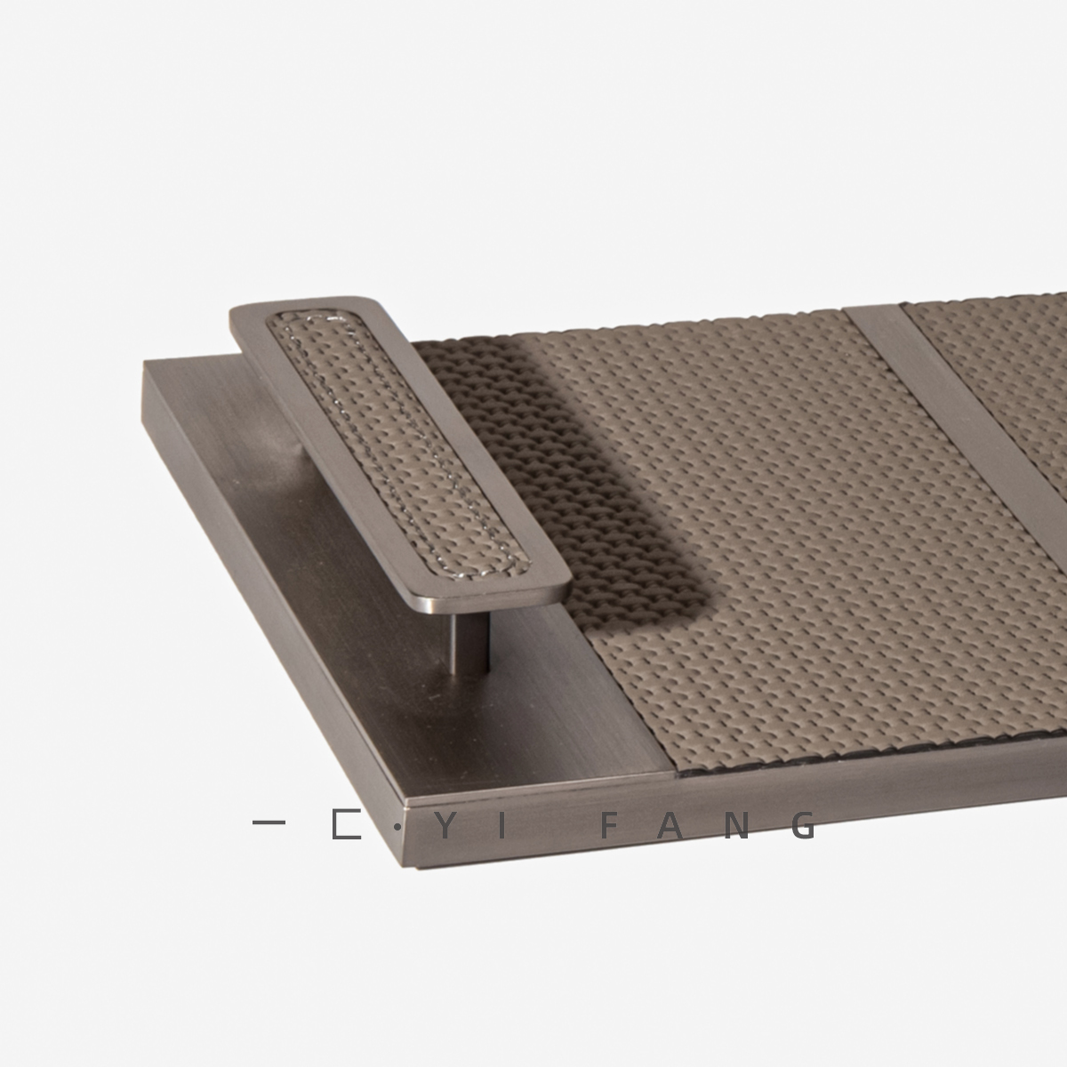 一匚长方形轻奢皮革金属托盘摆件样板间售楼处客厅衣帽间软装饰品