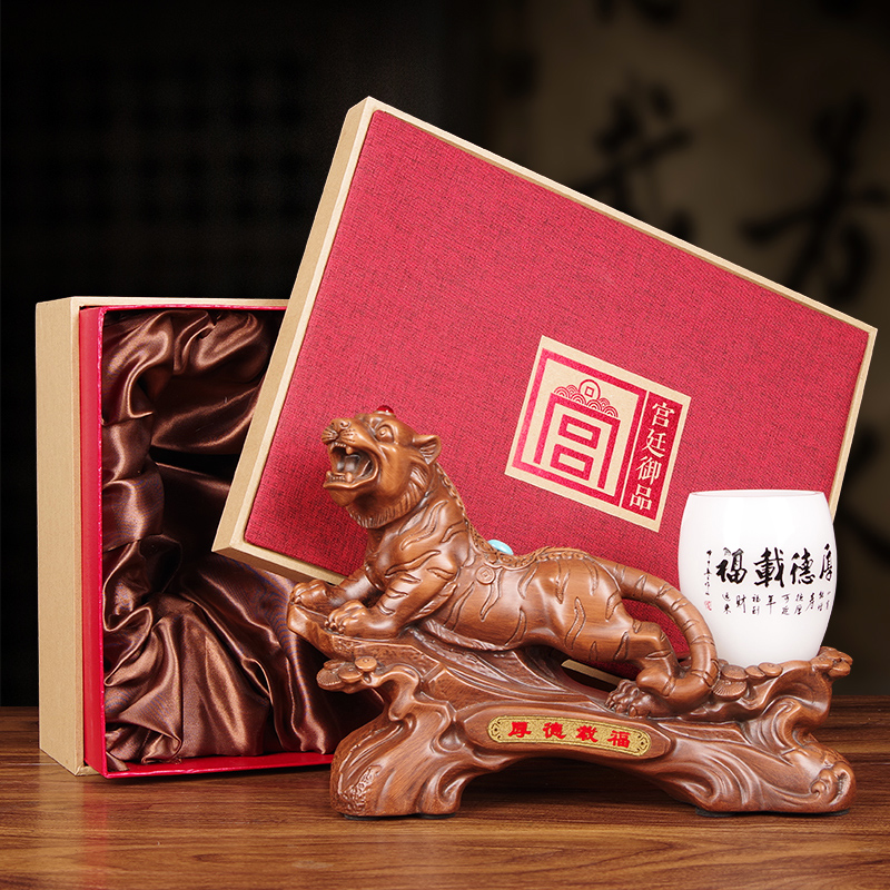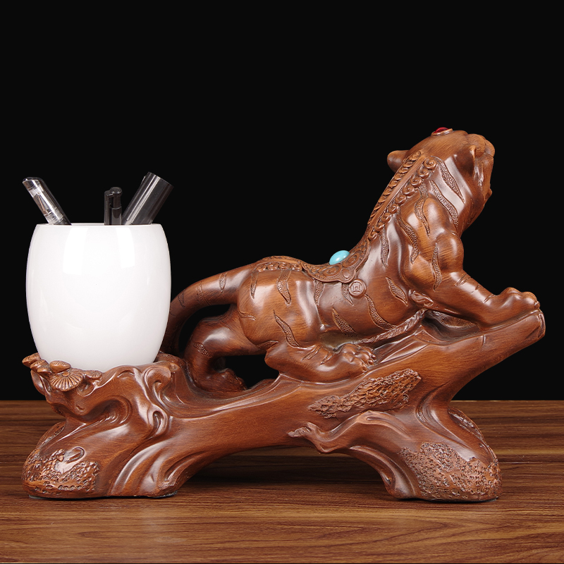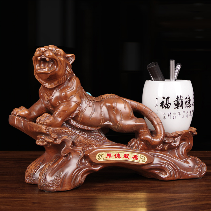 招财老虎摆件办公用品玉石笔筒送领导上司商务合作工艺品开业礼品