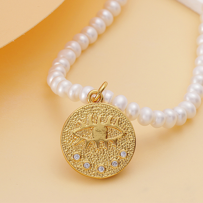 淡水珍珠项链白百合恶魔之眼项链白色锆石镶嵌精致半圆珍珠项链