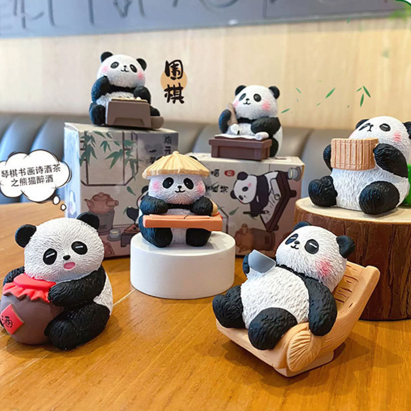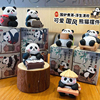 国风八雅毛流感熊猫车载摆件可爱精致树脂公仔桌面装饰品