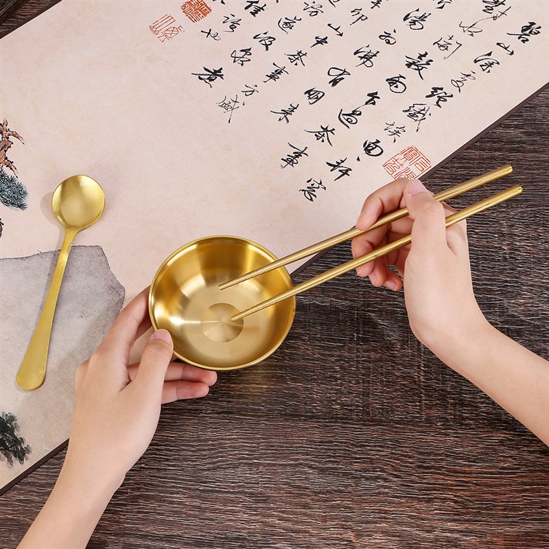 黄铜碗筷勺三件套家用餐具摆件中式家居装饰金属工艺品送人套装