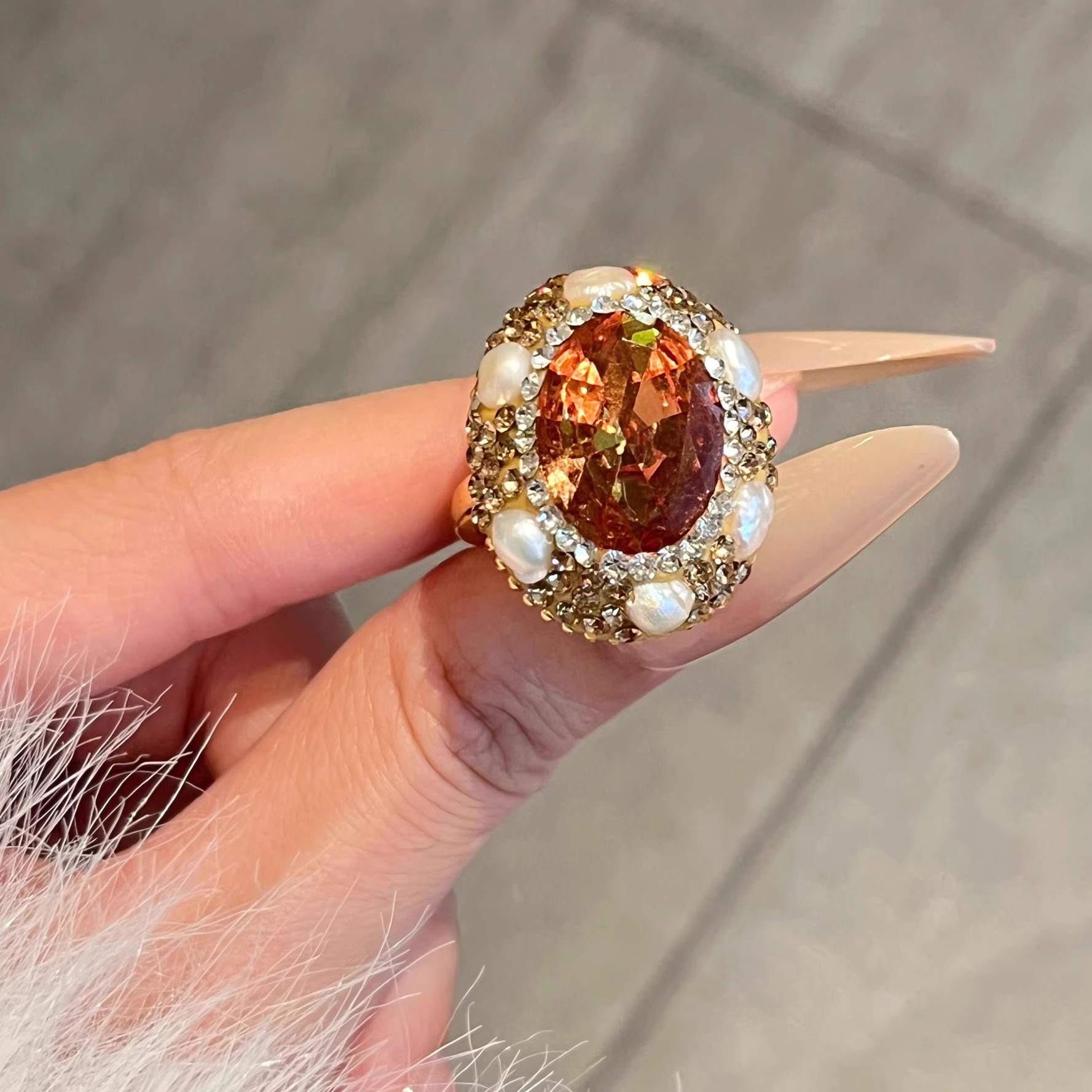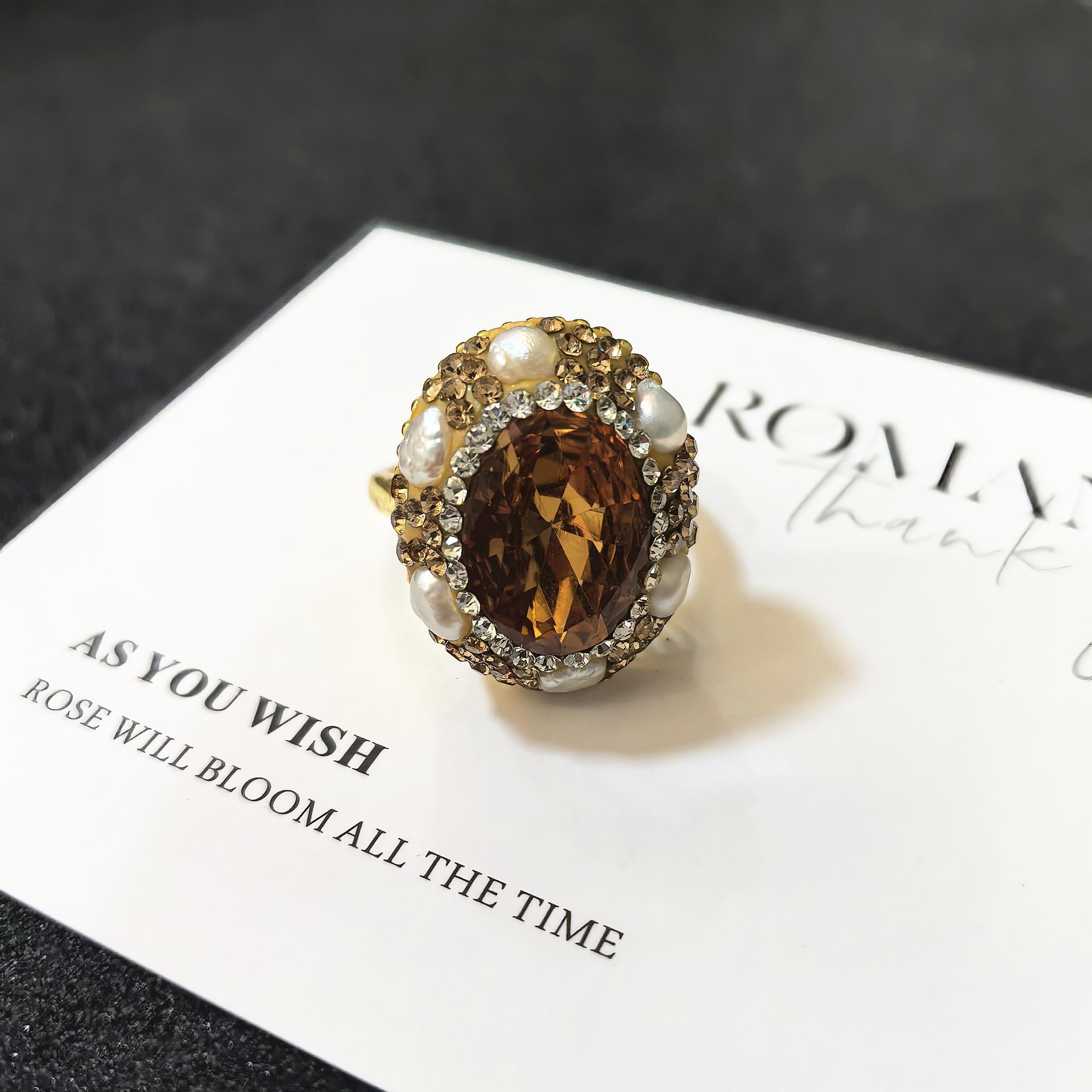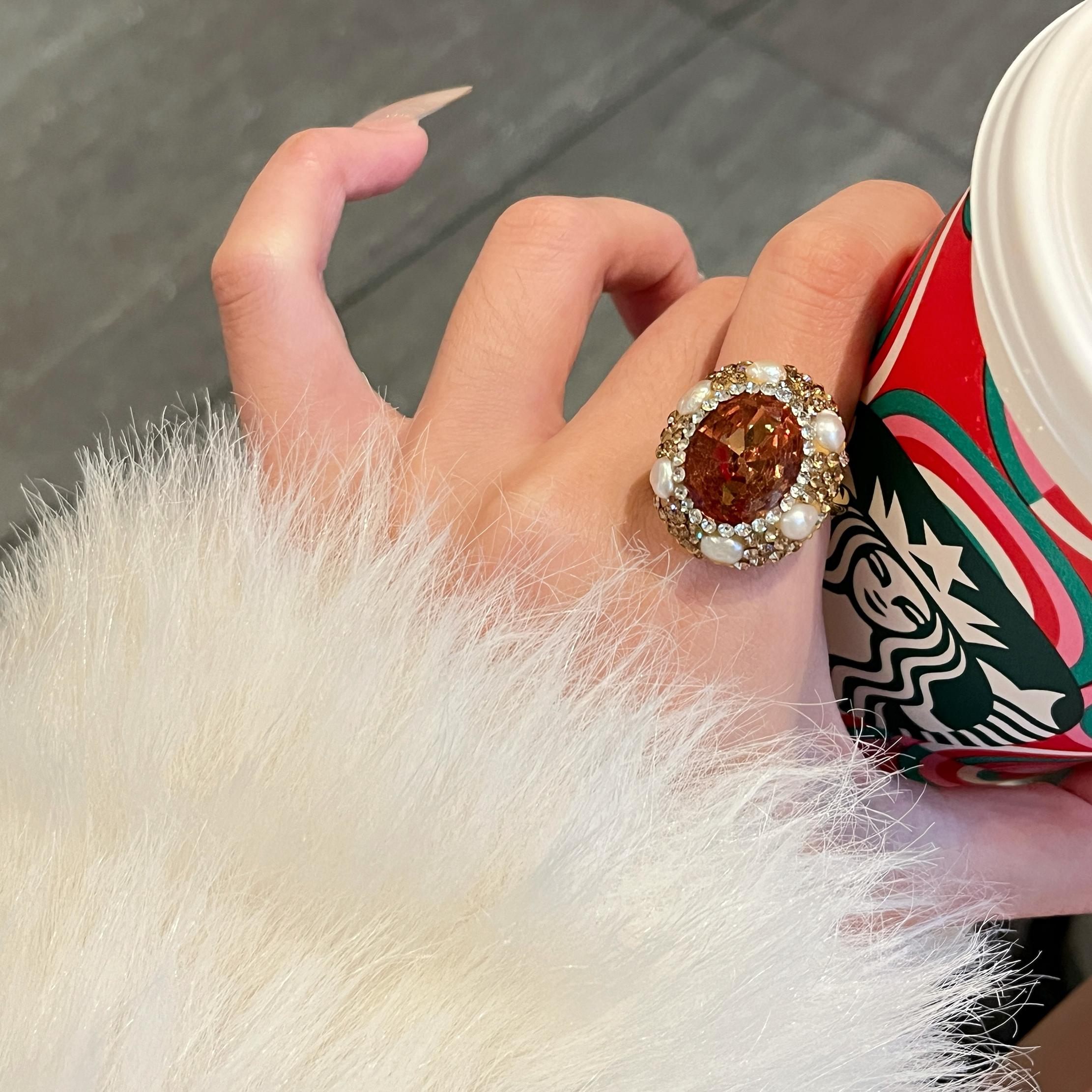 苏丹石珍珠戒指女夸张高级感轻奢小众法式精致中古食指戒配饰品