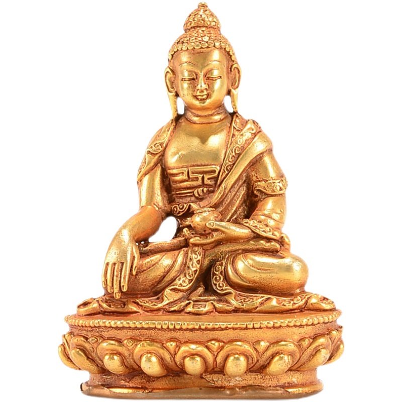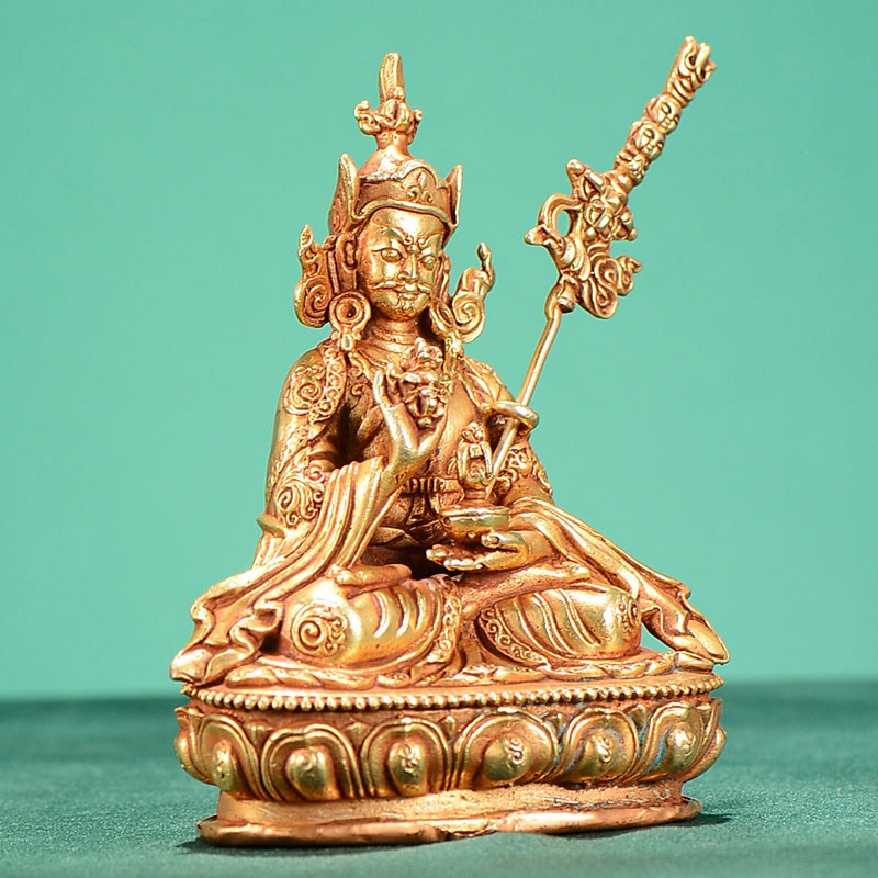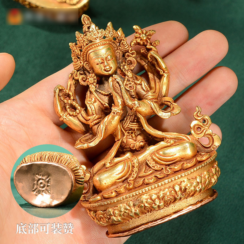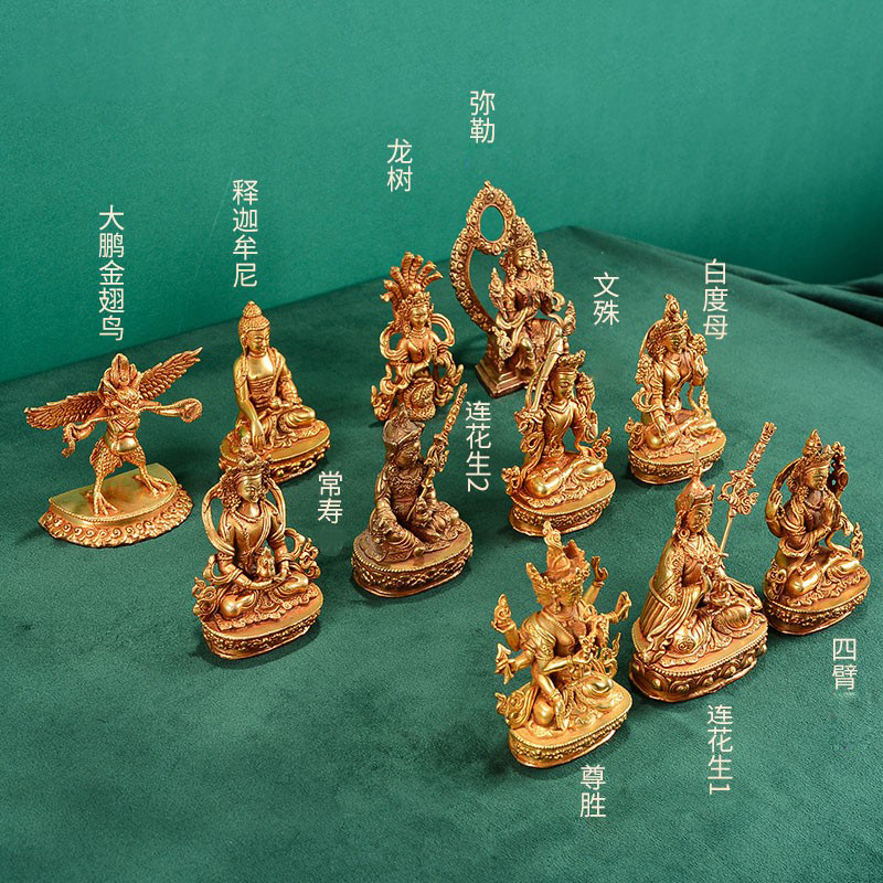 尼泊尔手工白度母小铜像莲花生摆件铜全鎏金文殊财神随身像
