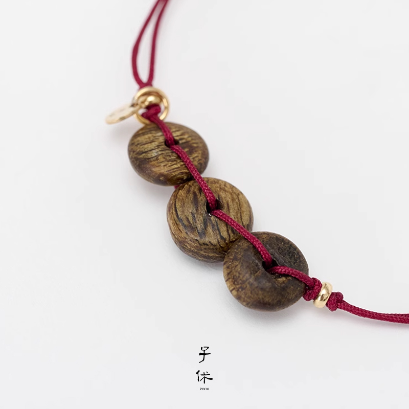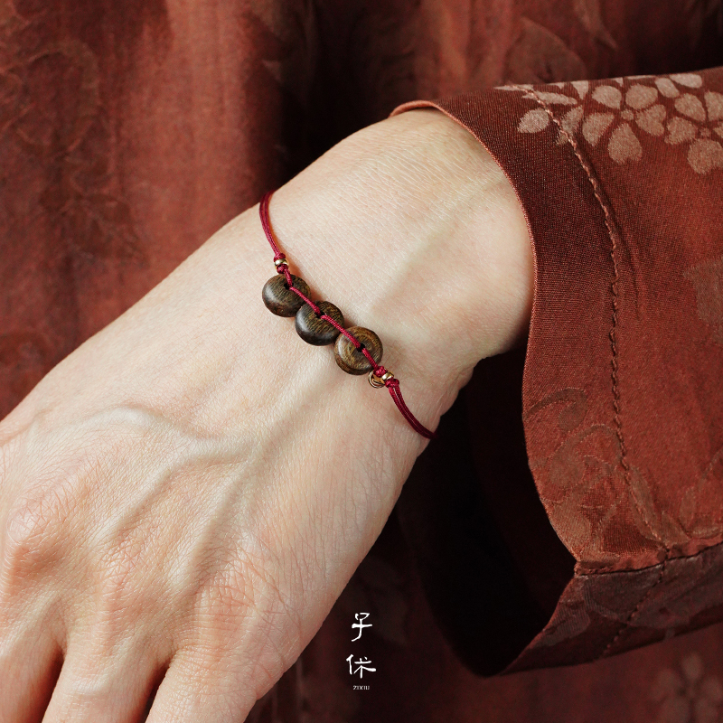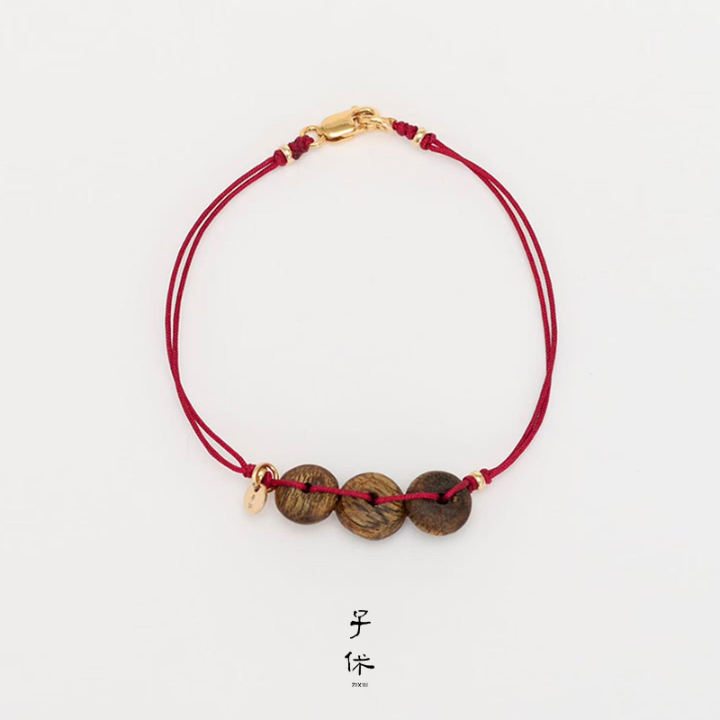 ZIXIU子休 沉香开门红细绳手链 手工编织气质红绳原创设计师 默叙