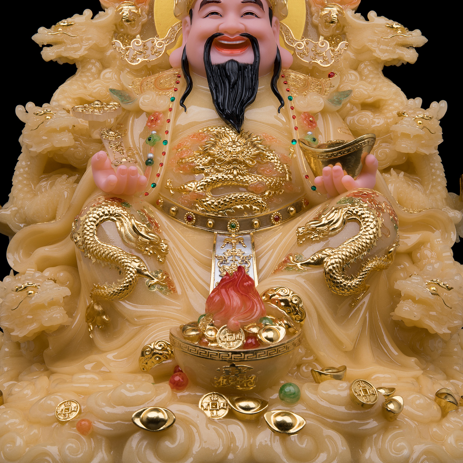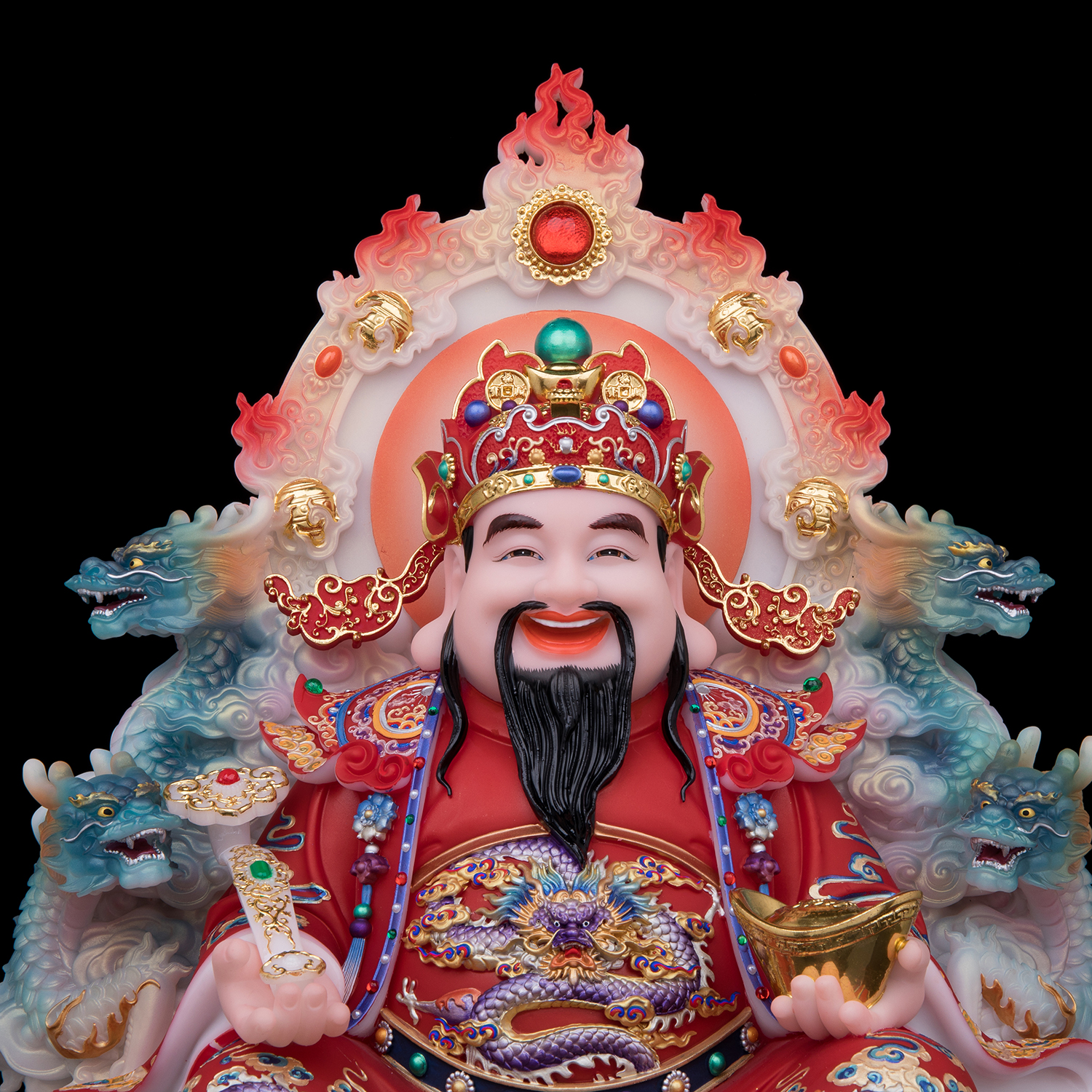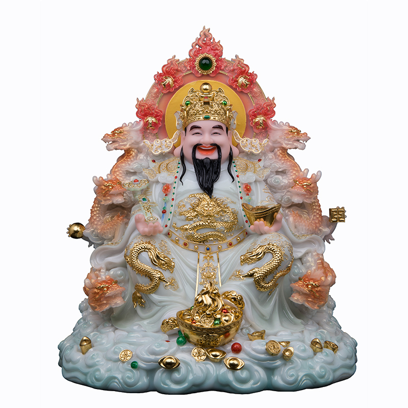 康盛汉白玉彩绘九龙财神爷神像如意文财神比干范蠡像居家供奉摆件