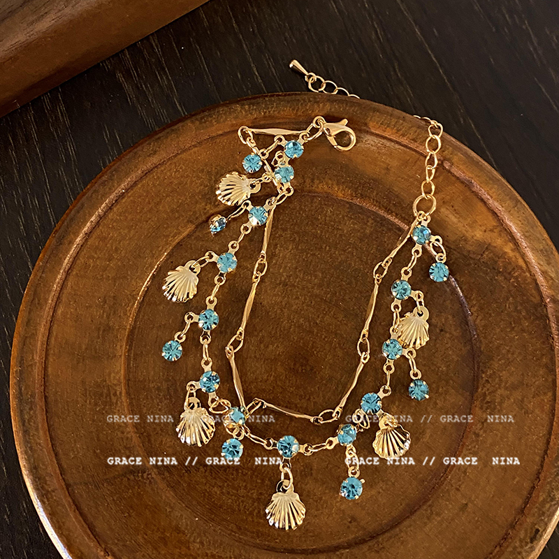 异域公主!蓝锆贝壳手链轻奢小众精致度假风叠戴手饰女高级感配饰
