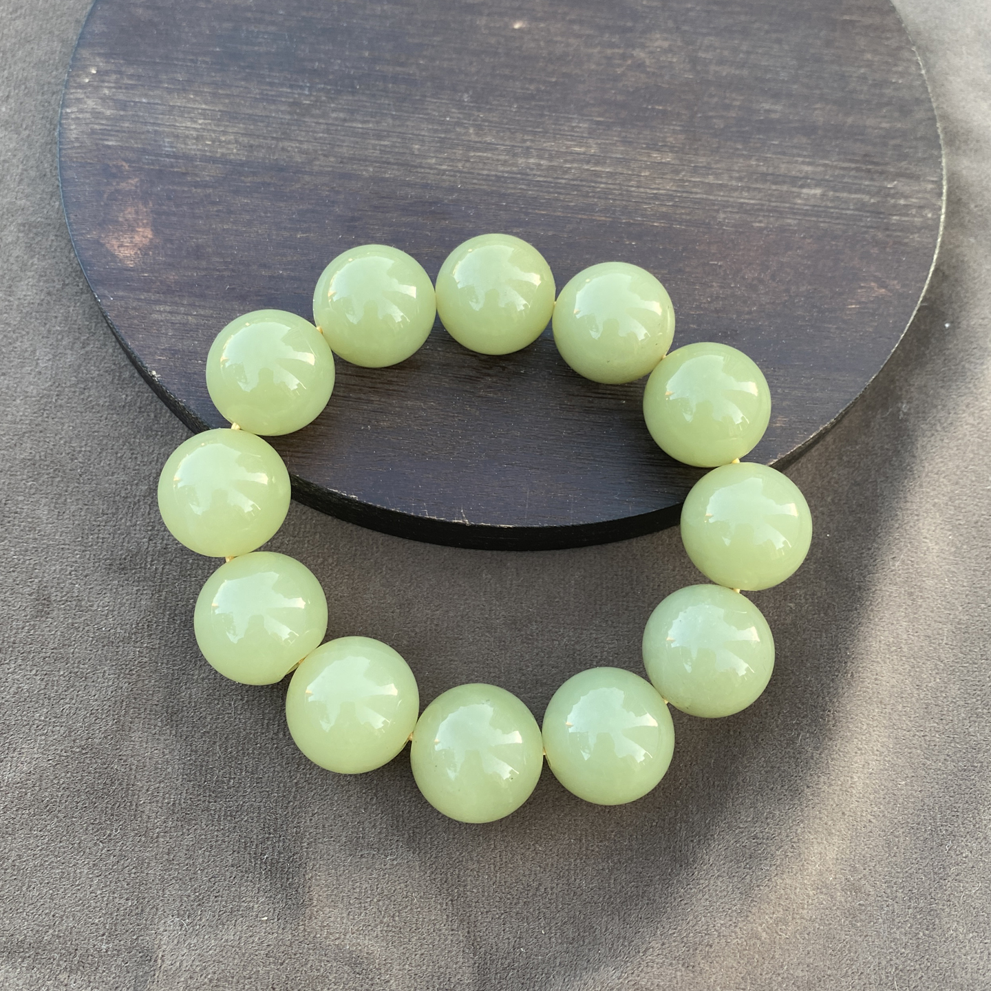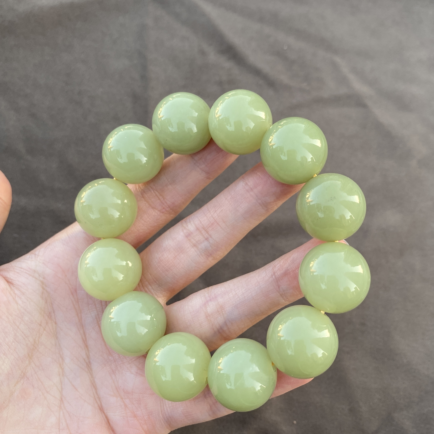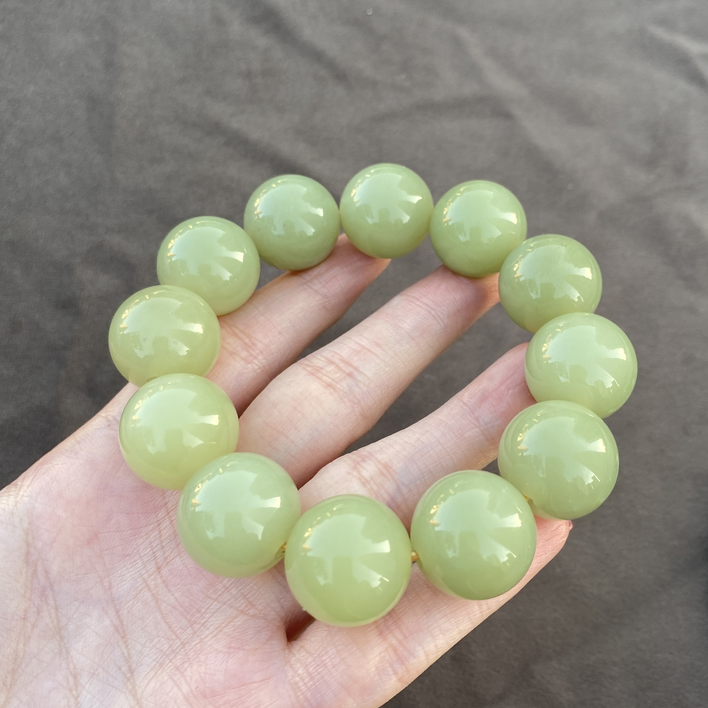 亏麻了方言和田玉新疆若羌黄色名品鸡油黄口料18mm圆珠黄玉手链A2