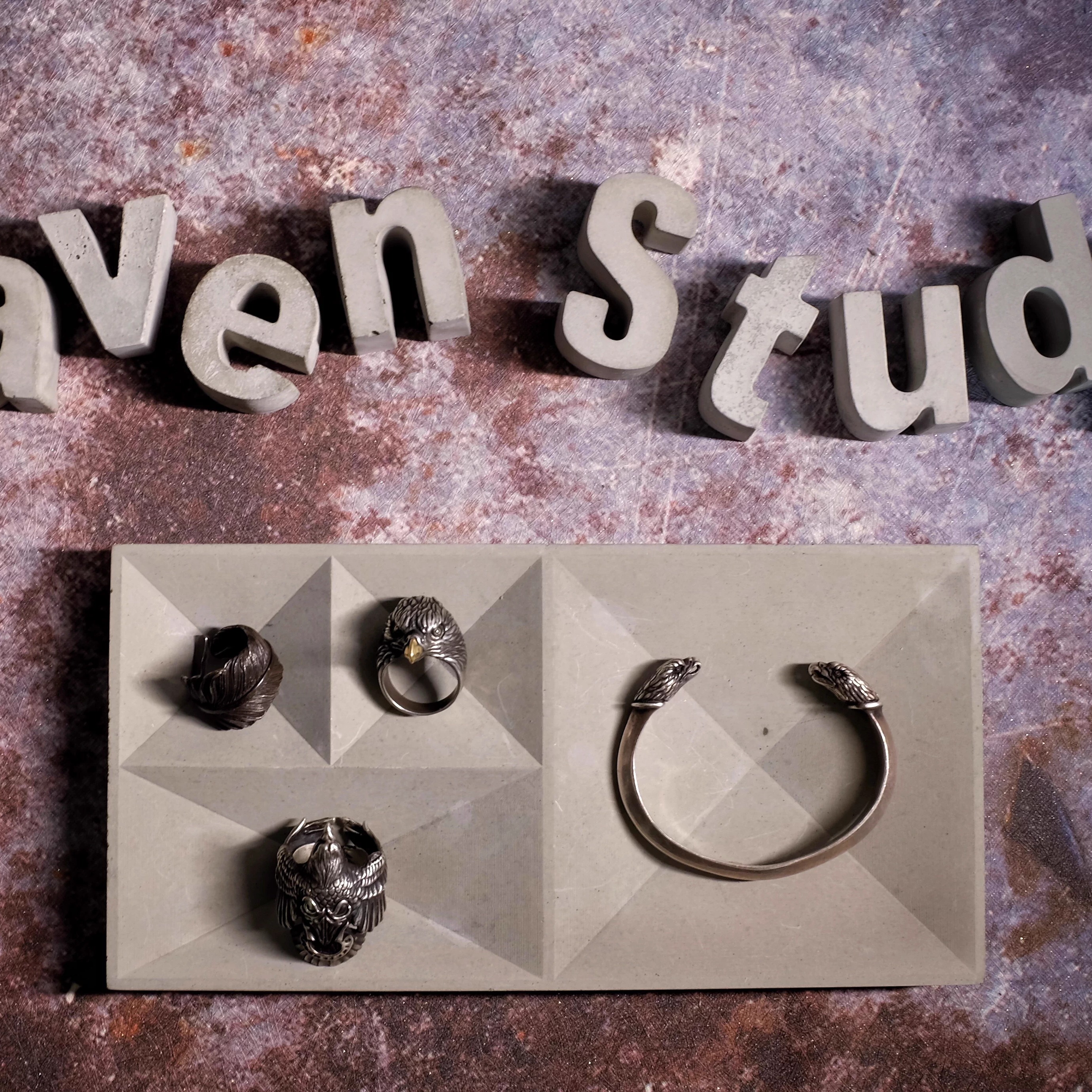 渡鸦工作室原创专属欧美鹰头手镯925银手工雕刻印第安饰品情侣款