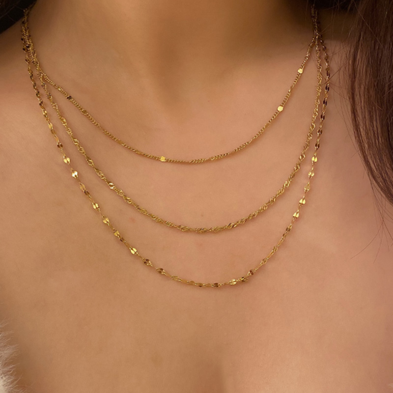 GWE夏新款ins小众设计款多层bling细锁骨链纯欲百搭金色钛钢项链