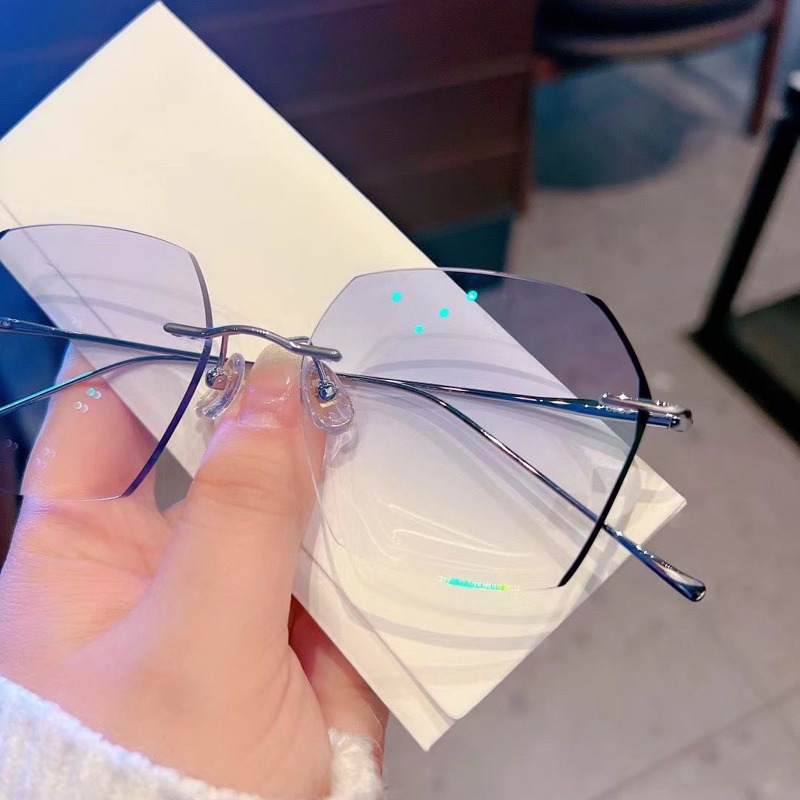 配纯钛近视眼镜男100/150/200/250/300/500度无框黑边变色眼镜