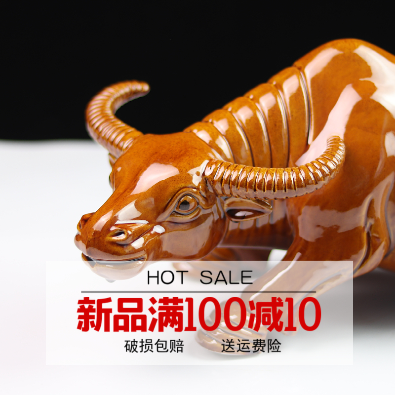 【订制】陶瓷水牛黄青牛摆件低头喝水卫生间厨房补缺角装饰工艺品