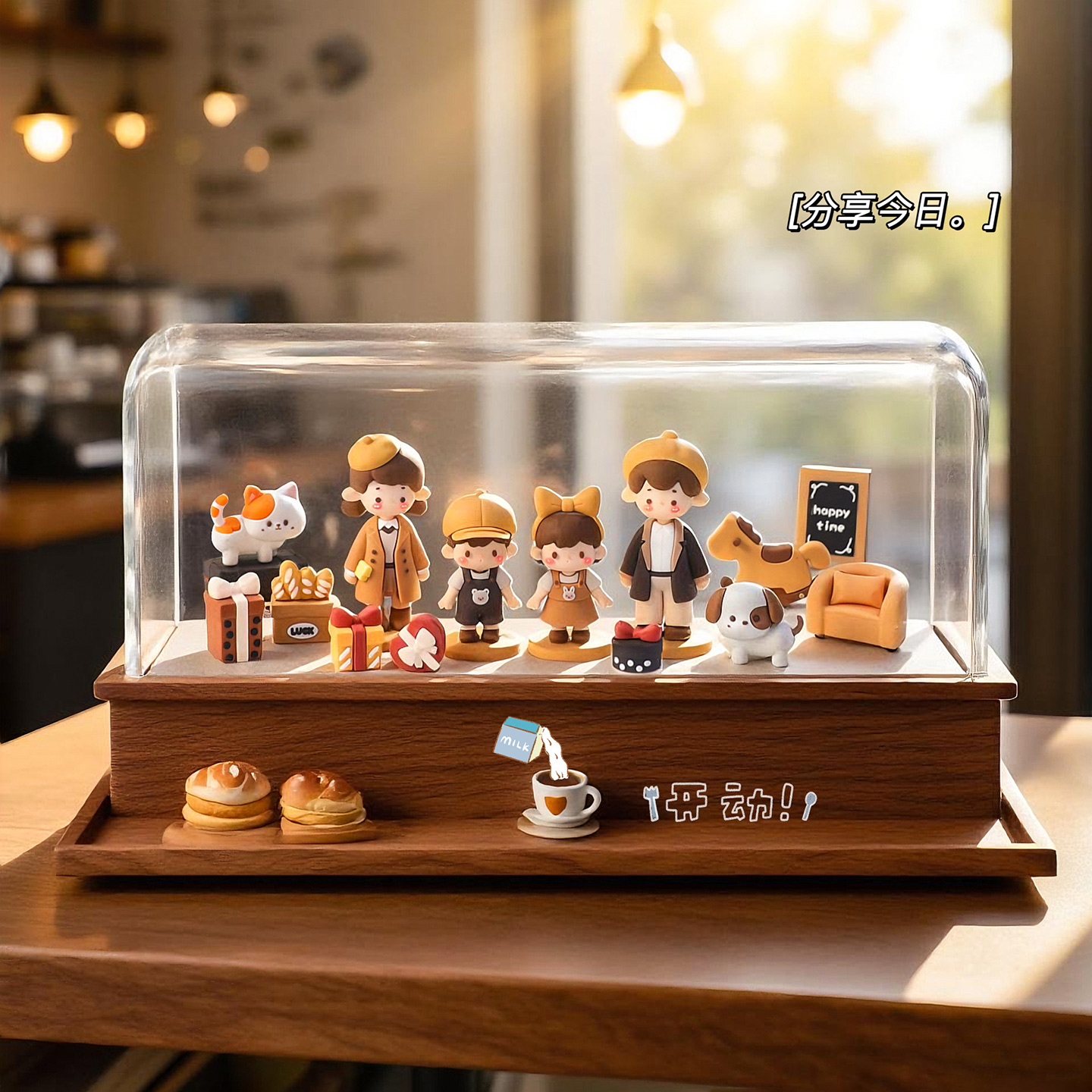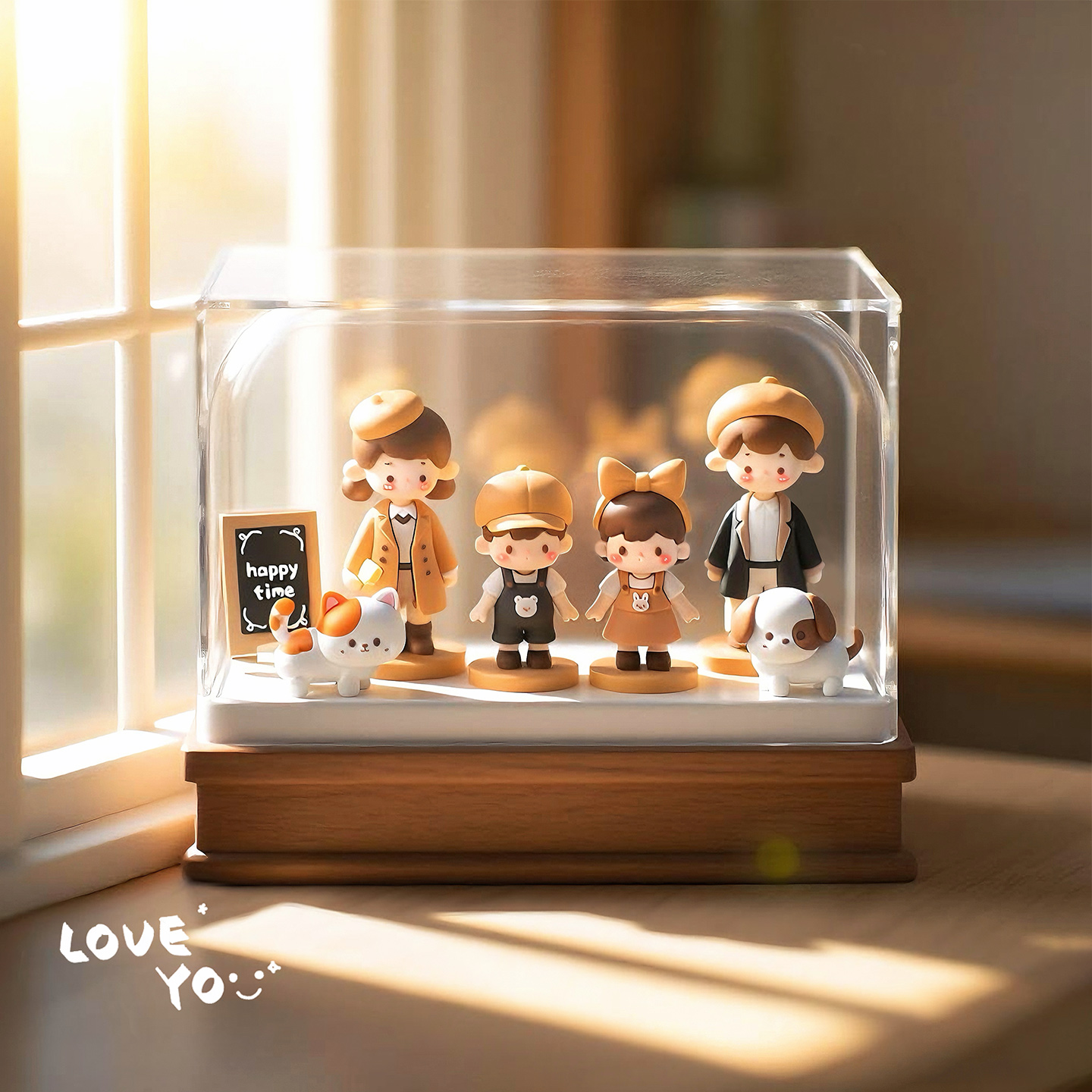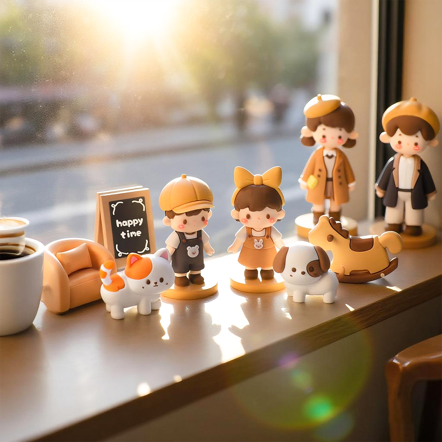 卡通男孩女孩玩偶摆件大地色系背带裤小情侣一家四口家居装饰潮玩