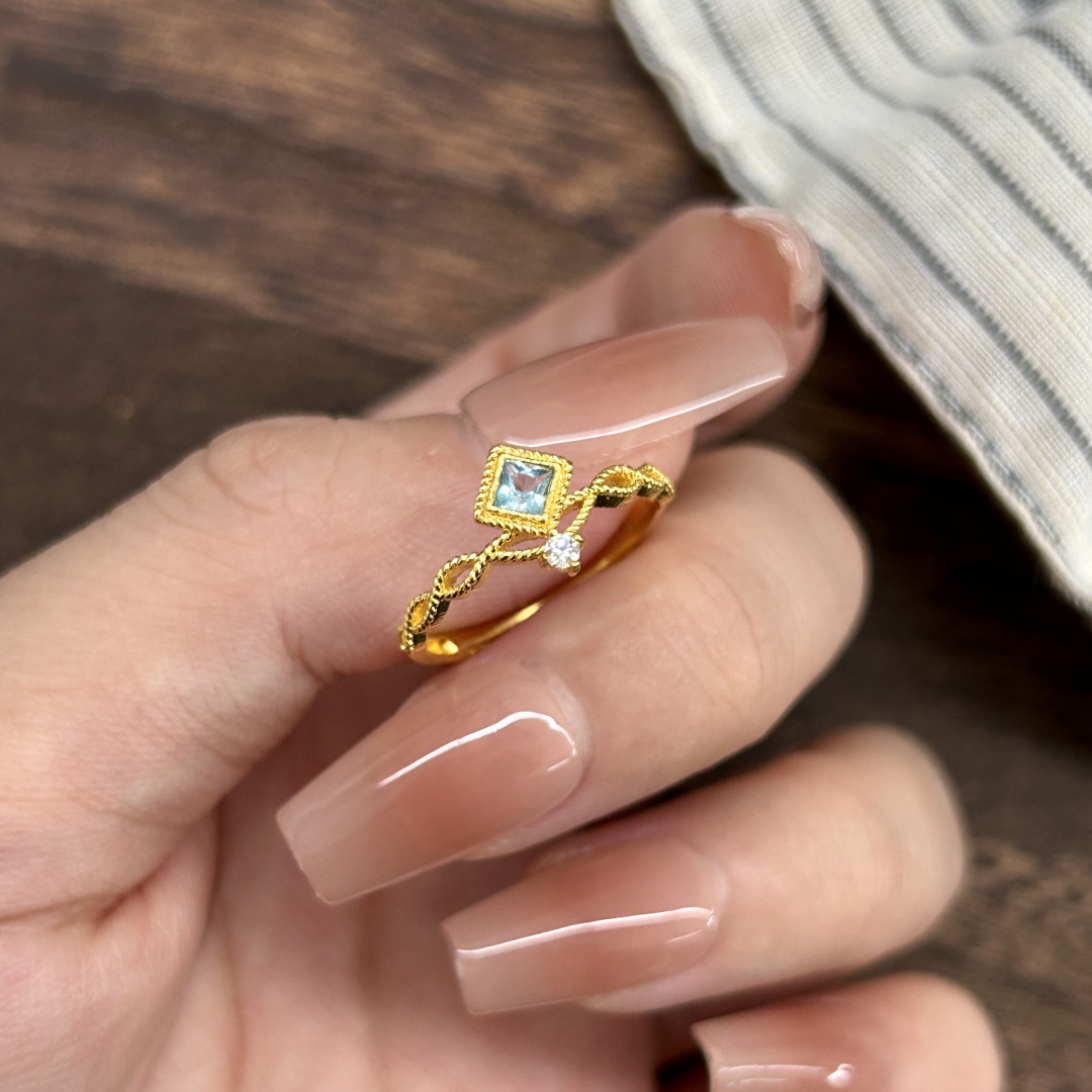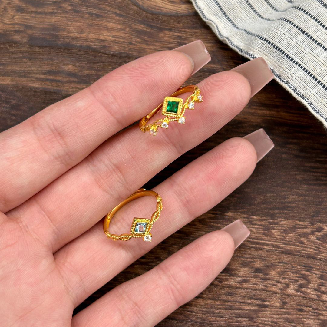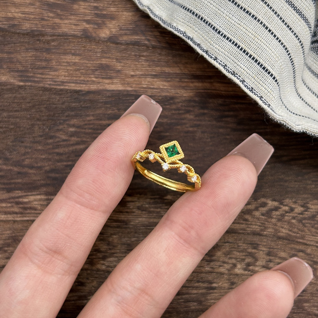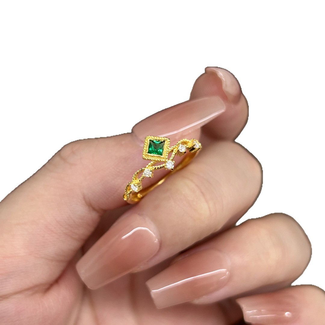几何方形镶钻金色镶嵌锆石戒指女小众复古指环时尚轻奢高级感手饰