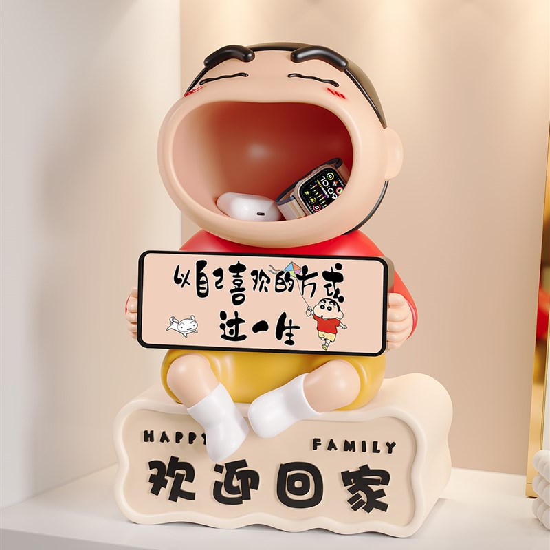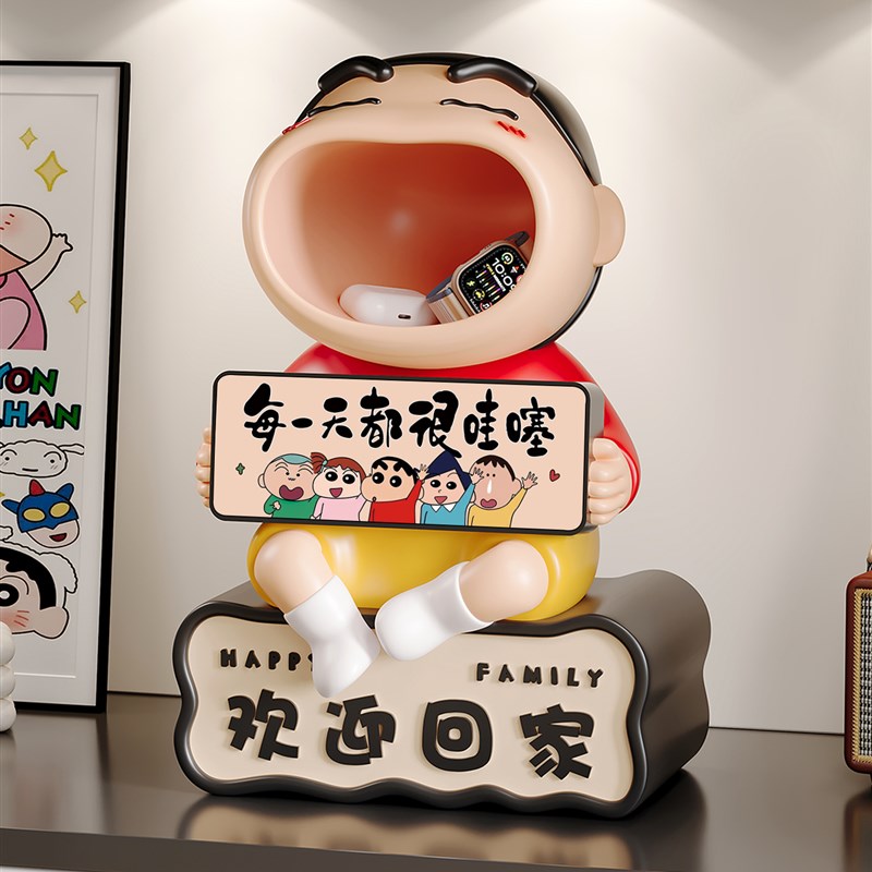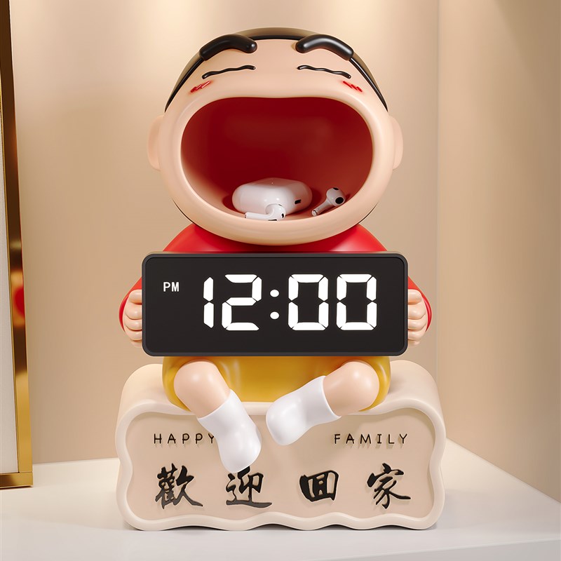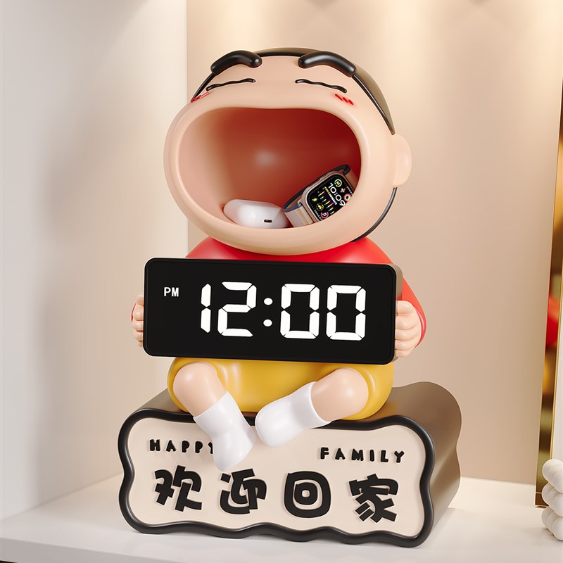 欢迎回家蜡笔小新入户钥匙收纳玄关摆件桌面电子时钟闹钟学生礼物