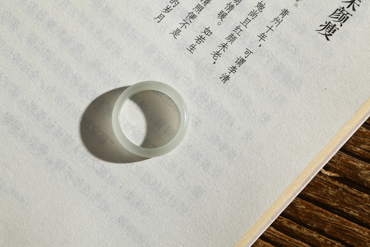20号戒指 和田玉烟紫烟灰色薄款泥鳅背素圈指环 5604