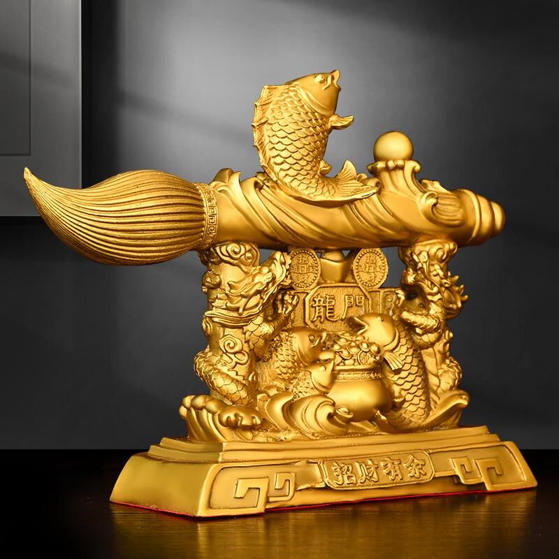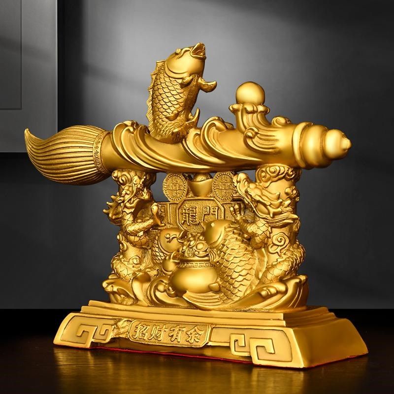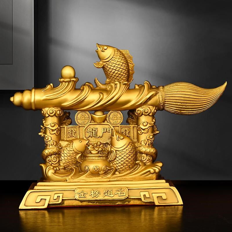 纯黄铜招财有余文昌笔摆件家居鲤鱼跃龙门发大笔财吉祥工艺品摆设