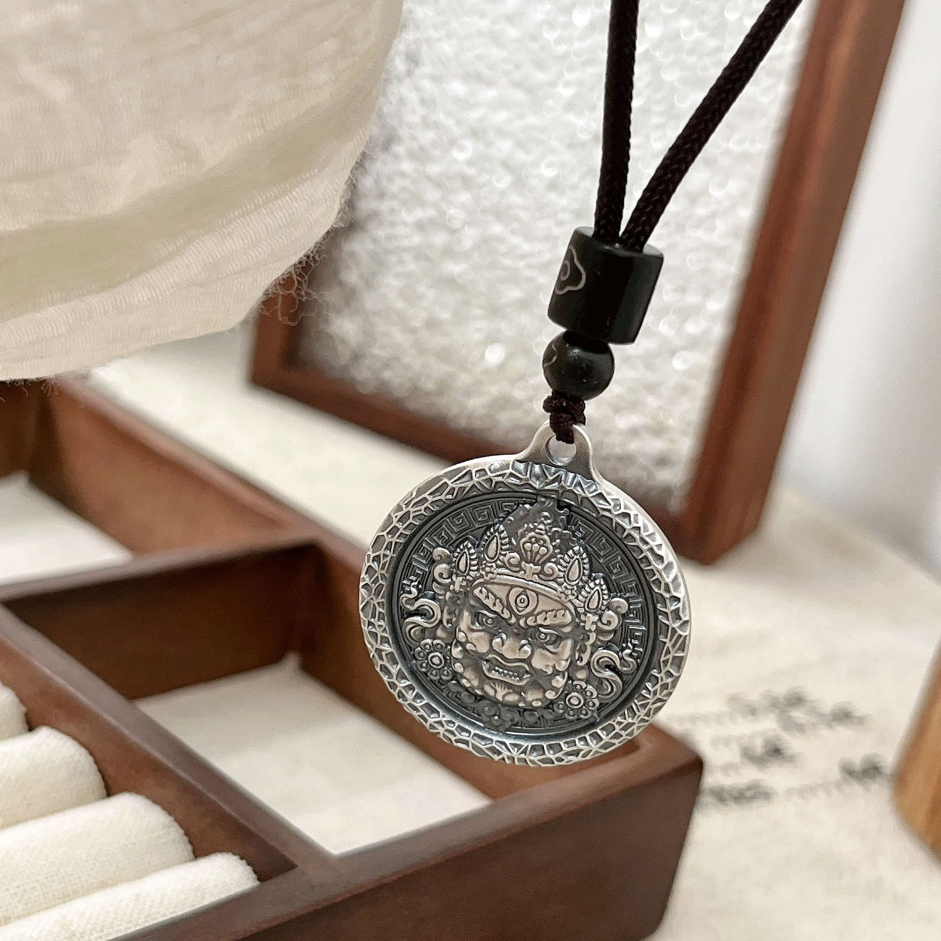 纯银财神吊坠男女款实心圆牌个性古法银挂件吉言足银999国潮吊坠
