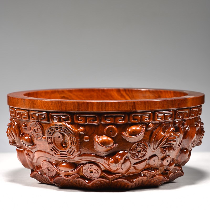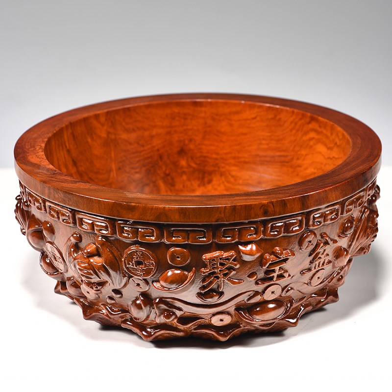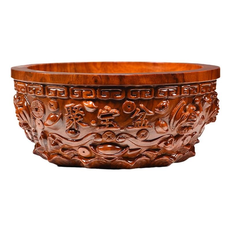 花梨木雕刻聚宝盆摆件金元宝聚宝盆客厅办公店铺开业乔迁工艺礼品
