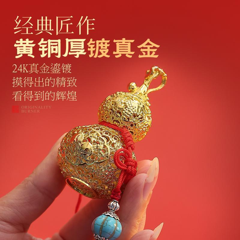 铜葫芦装饰摆饰花丝福禄镀金手把件随身把玩车载挂件香囊香丸礼品