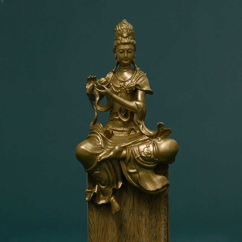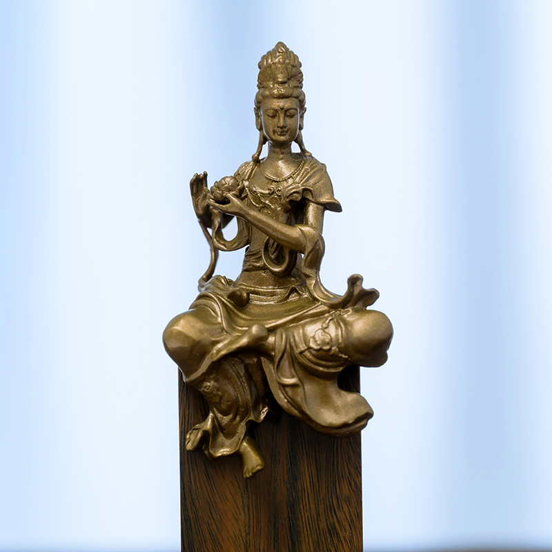 持莲自在观音佛像神像观世音菩萨像摆件铜像迷你精致小随身佛供奉