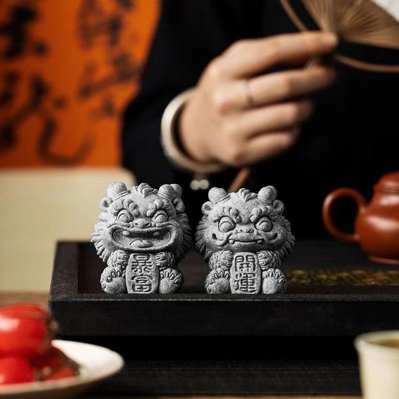 国潮砂石暴富茶宠精品可养t桌面摆件风狮爷创意茶桌装饰品装饰招